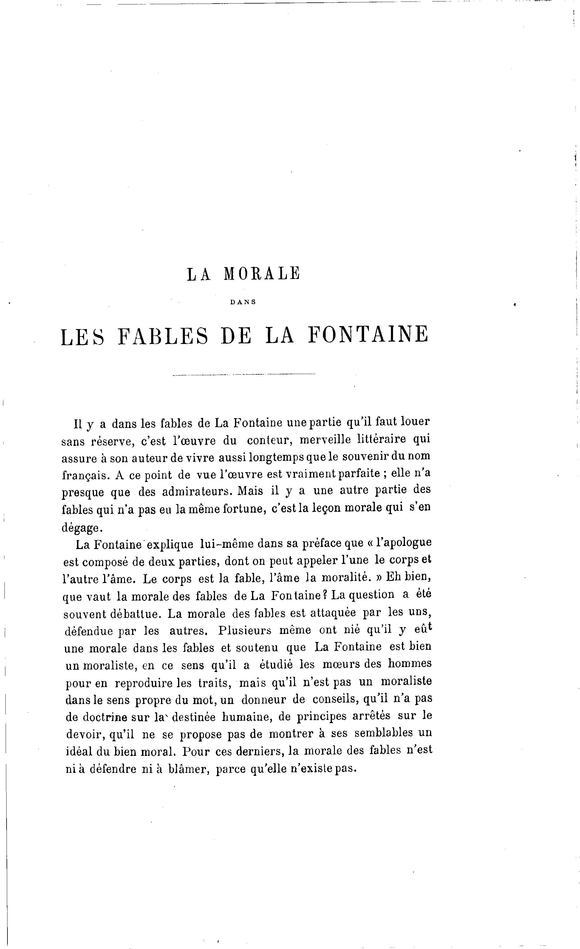une morale dans les fables et soutenu que La Fontaine est bien