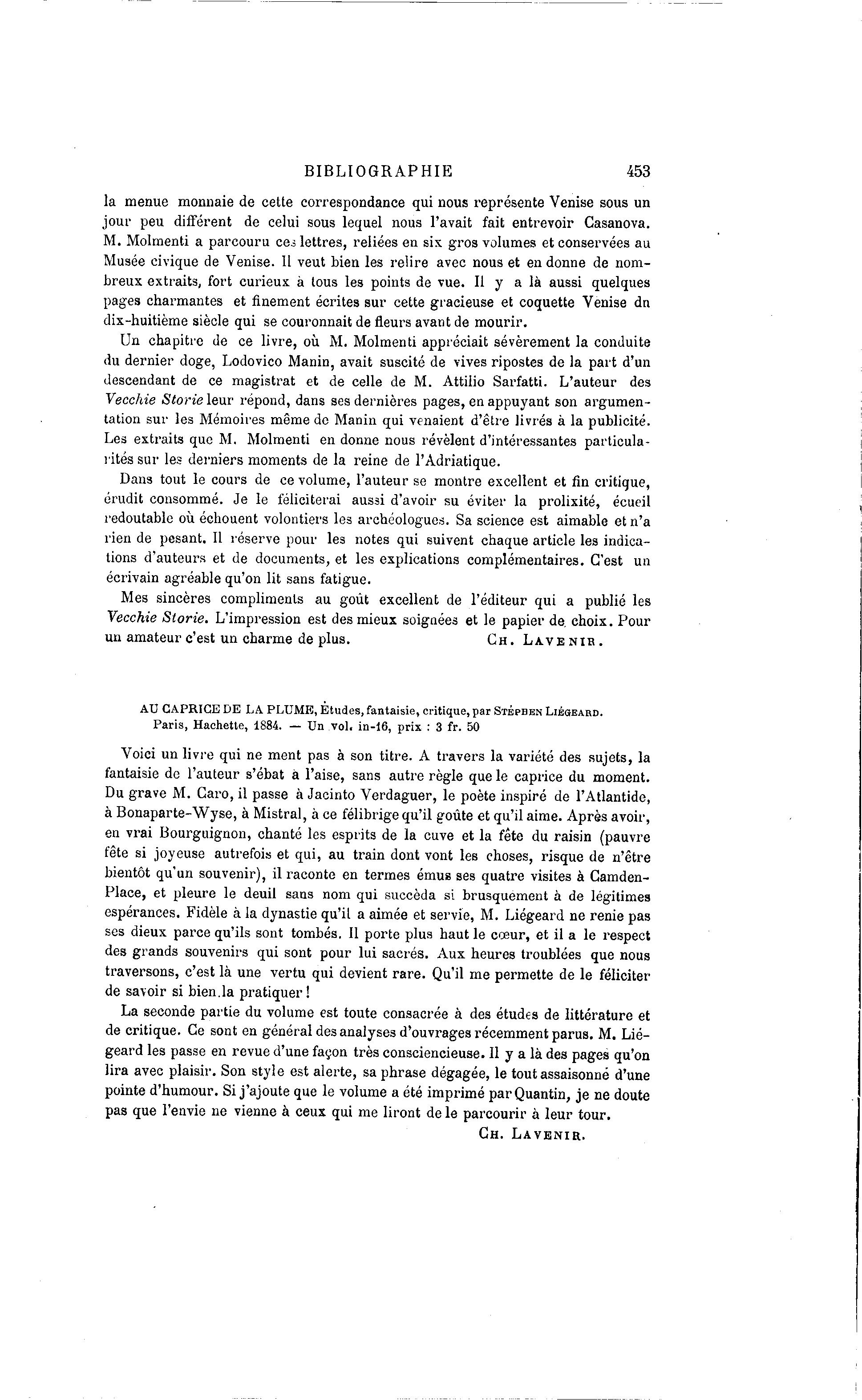 de critique. Ce sont en général des analyses d'ouvrages récemment parus. M. Lié-