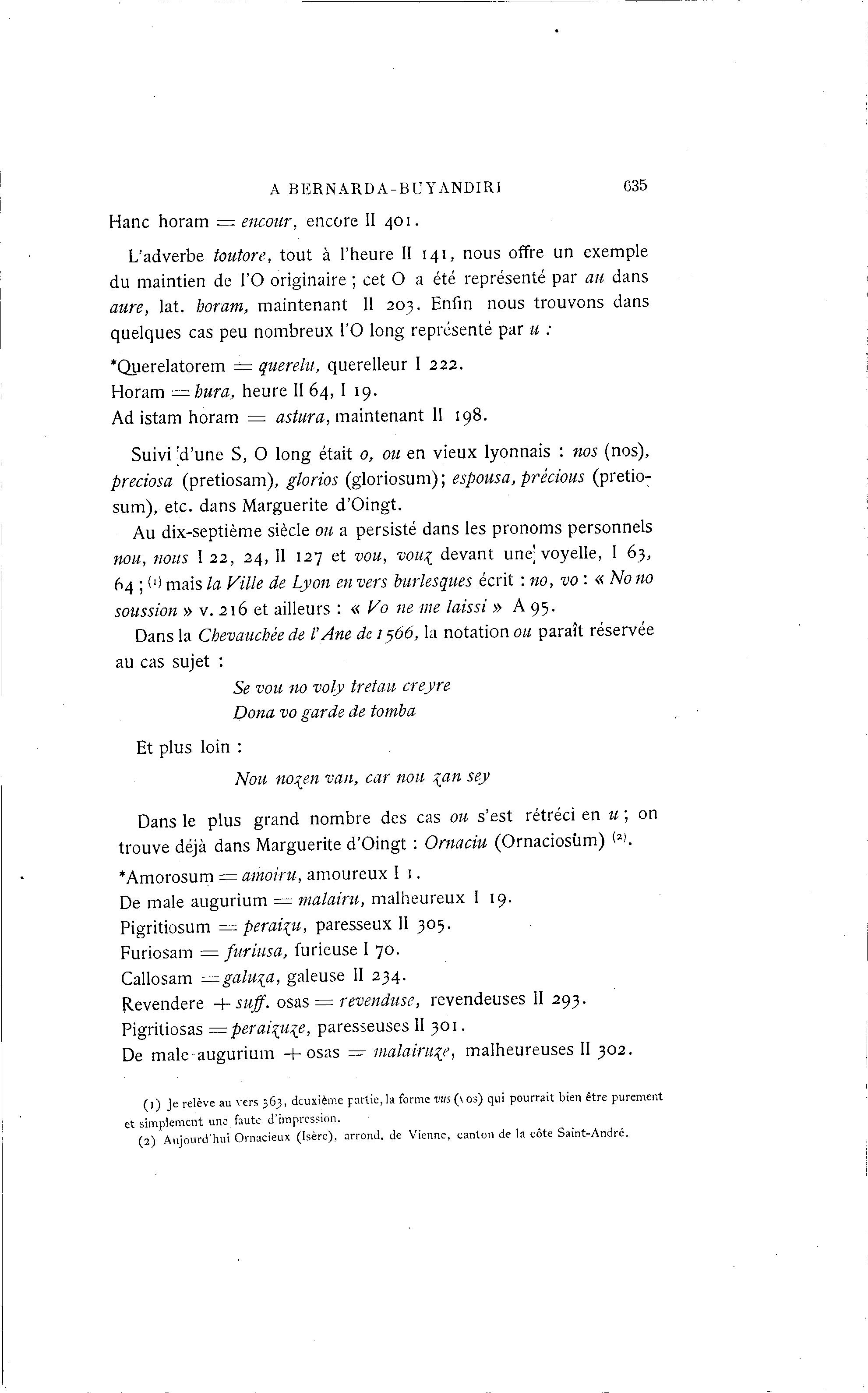 aure, lat. boram, maintenant II 203. Enfin nous trouvons dans