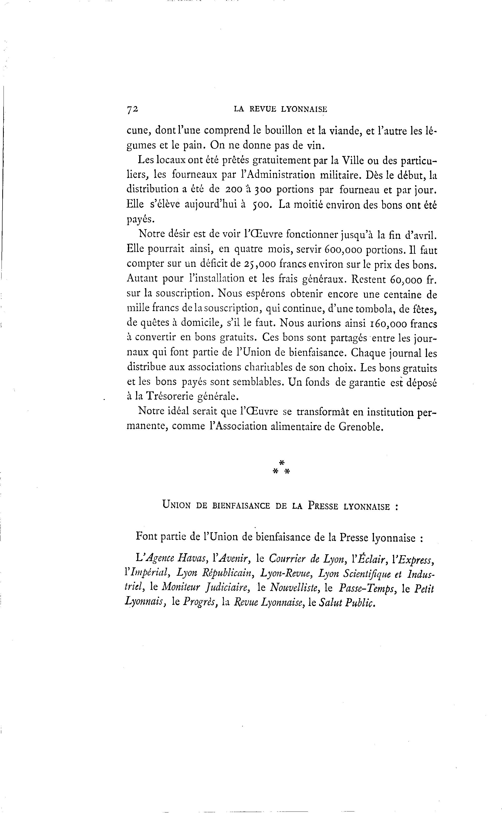 UNION DE BIENFAISANCE DE LA PRESSE LYONNAISE :