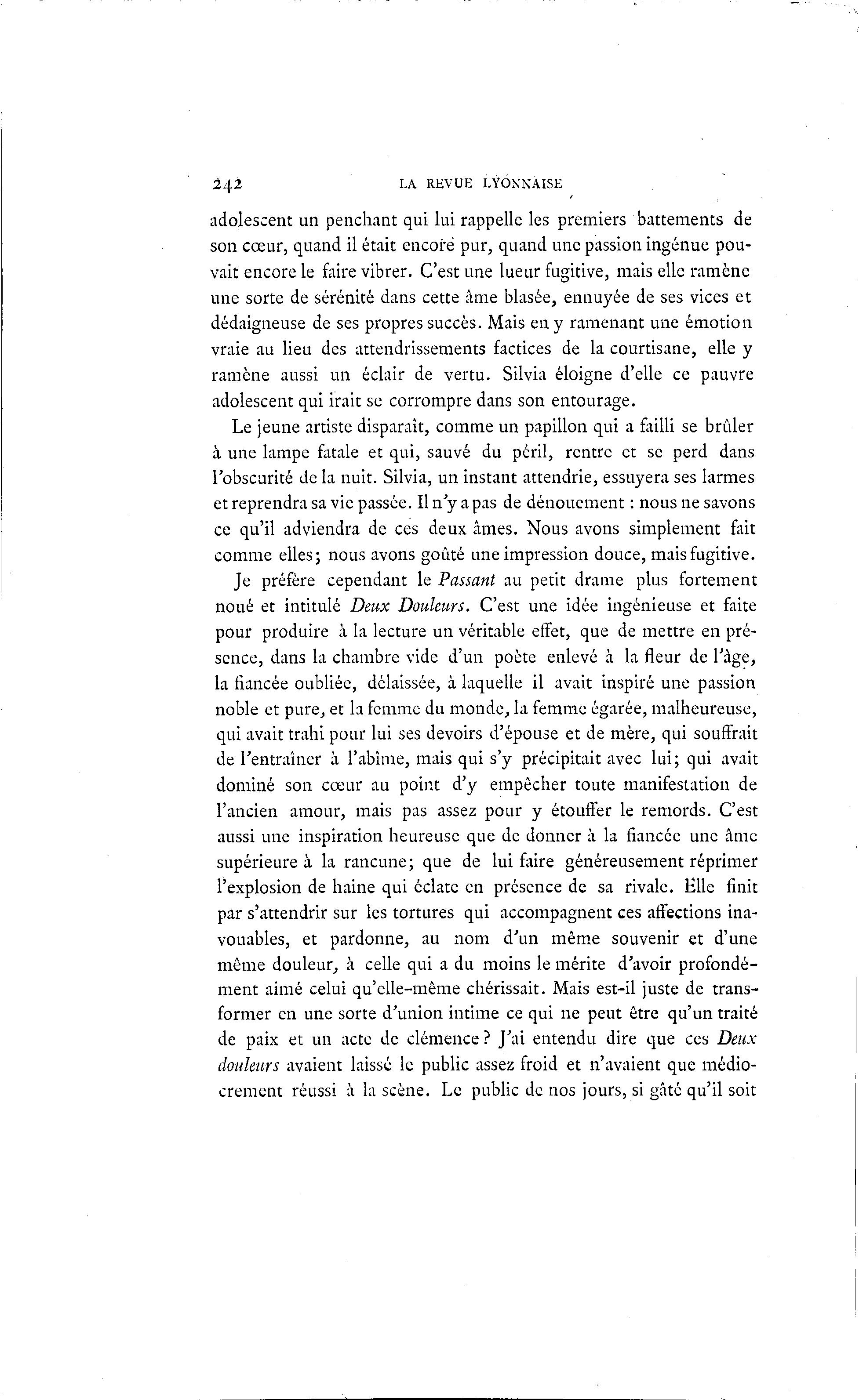 vraie au lieu des attendrissements factices de la courtisane, elle y