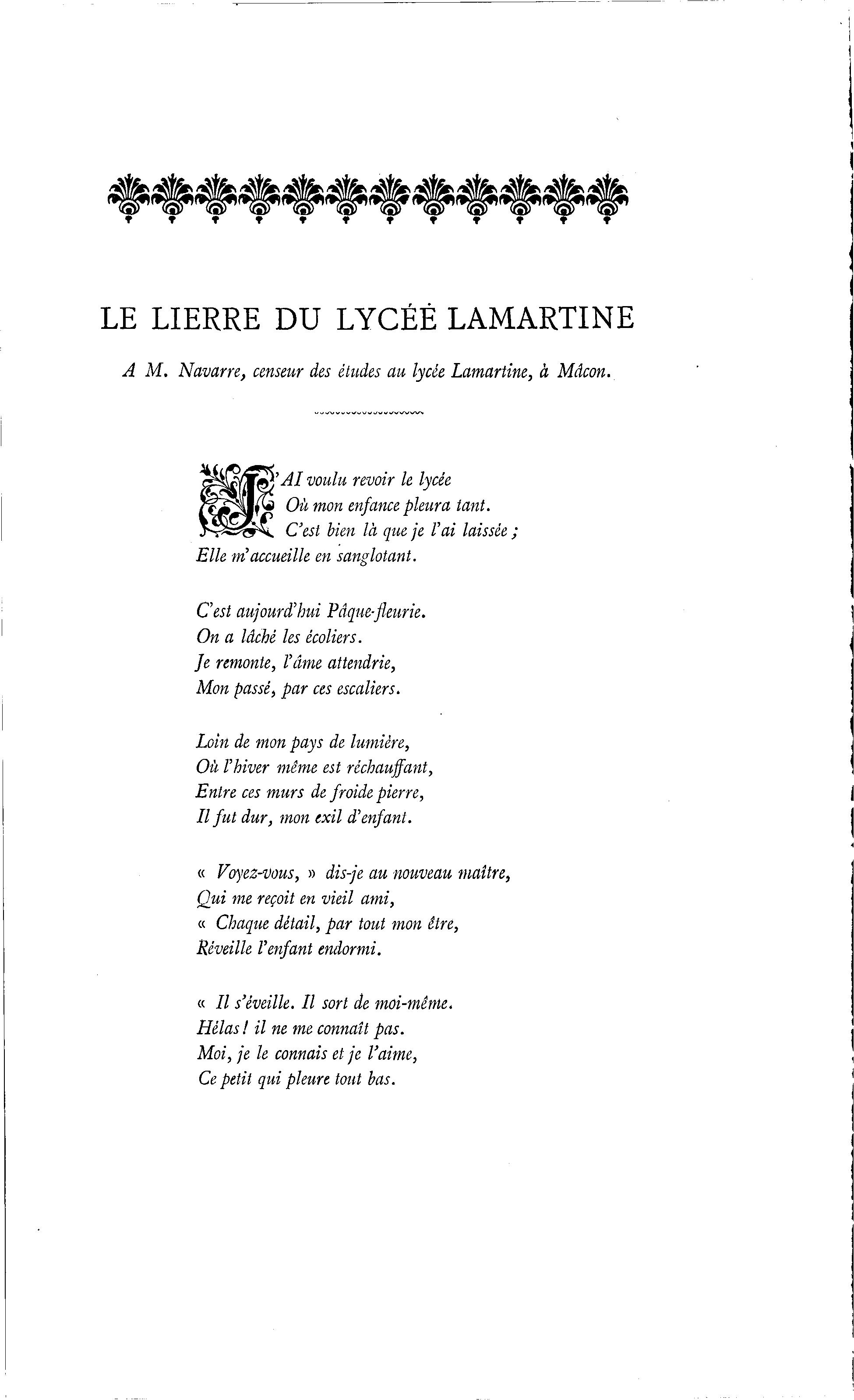 A M. Navarre, censeur des études au lycée Lamartine, à Mdcon.