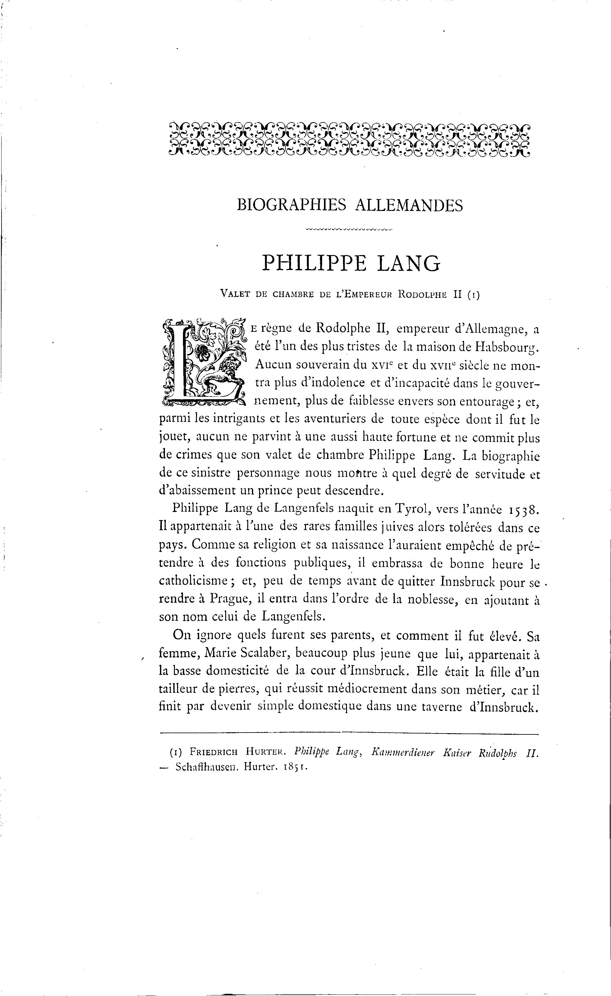 Philippe Lang de Langenfels naquit en Tyrol, vers l'année 1538.