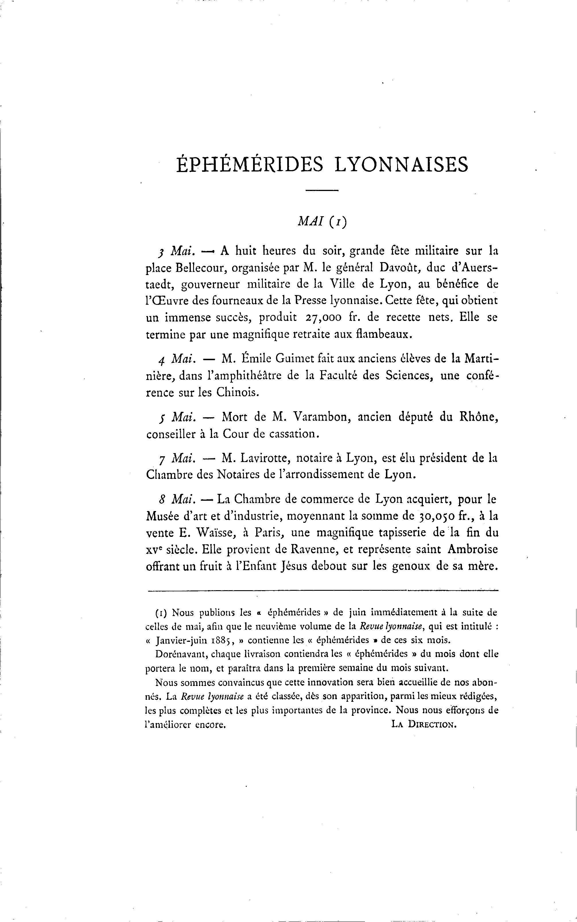 ÉPHÉMÉRIDES LYONNAISES