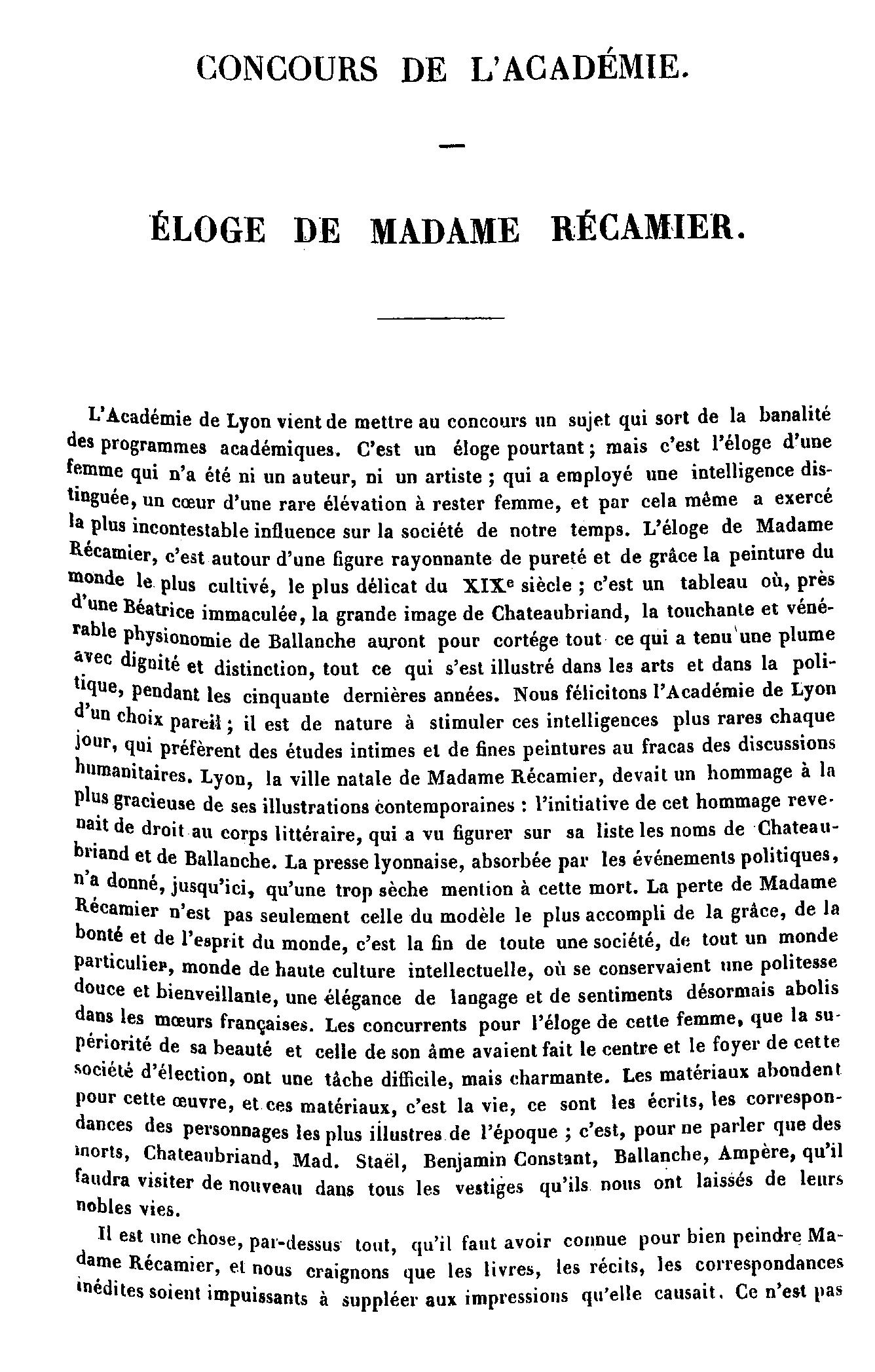 dame Récamier, et nous craignons que les livres, les récils, les correspondances