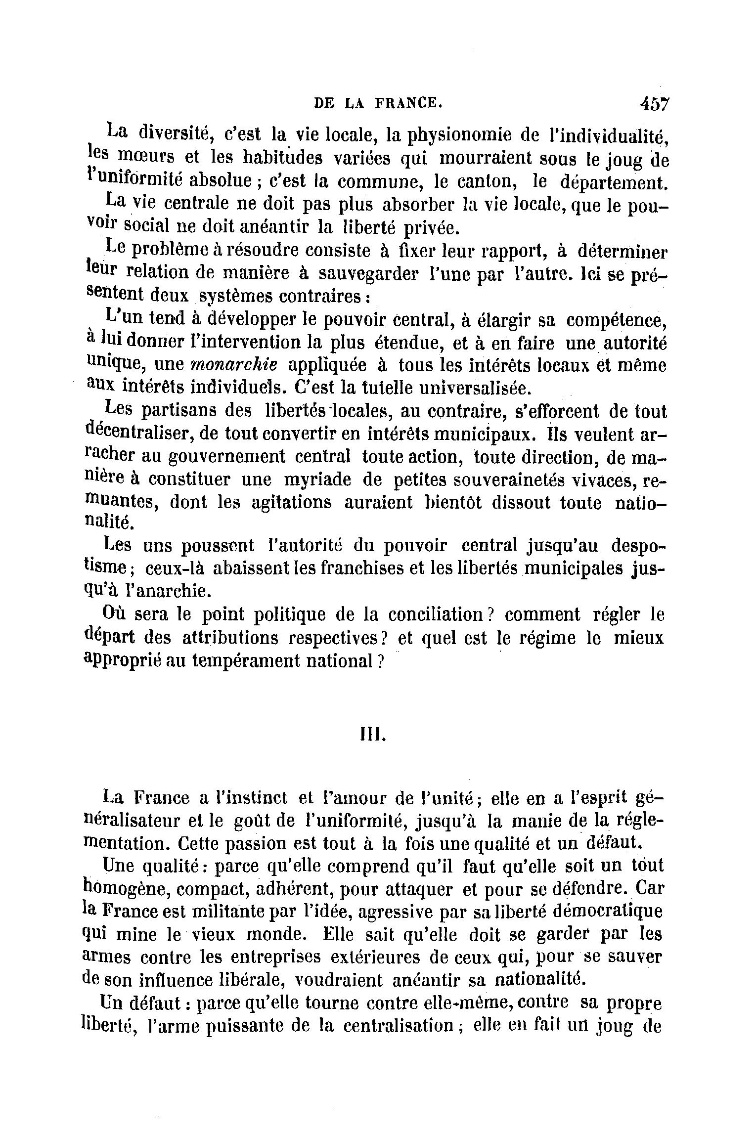 La France a l'instinct et l'amour de l'unité; elle en a l'esprit gé-