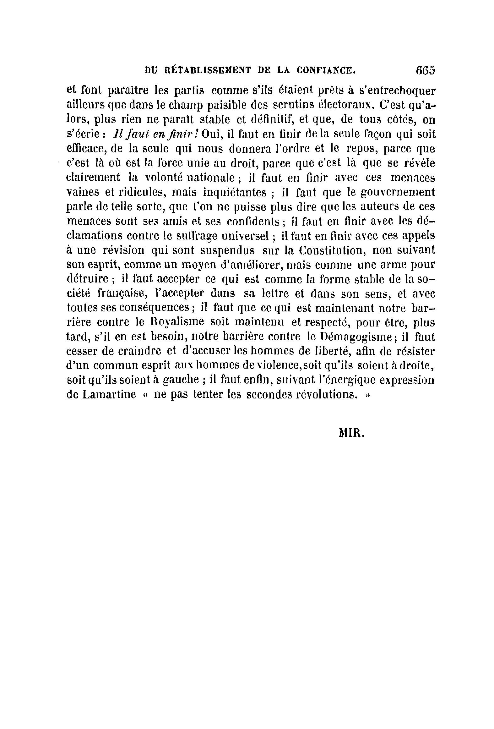 DU RÉTABLISSEMENT DE LA CONFIANCE. 663