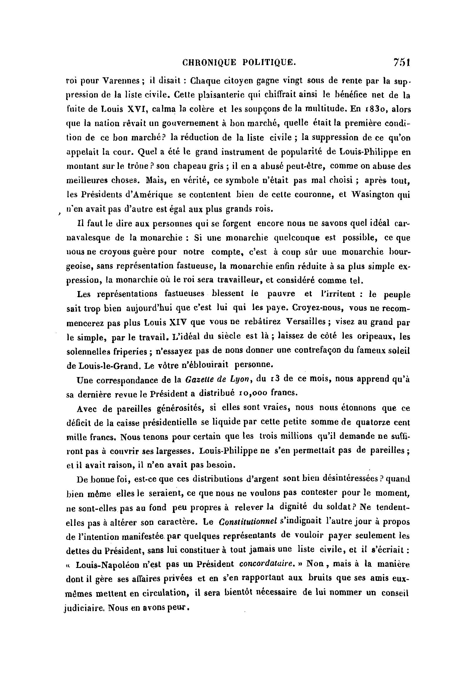 ront pas à couvrir ses largesses. Louis-Philippe ne s'en permettait pas de pareilles;