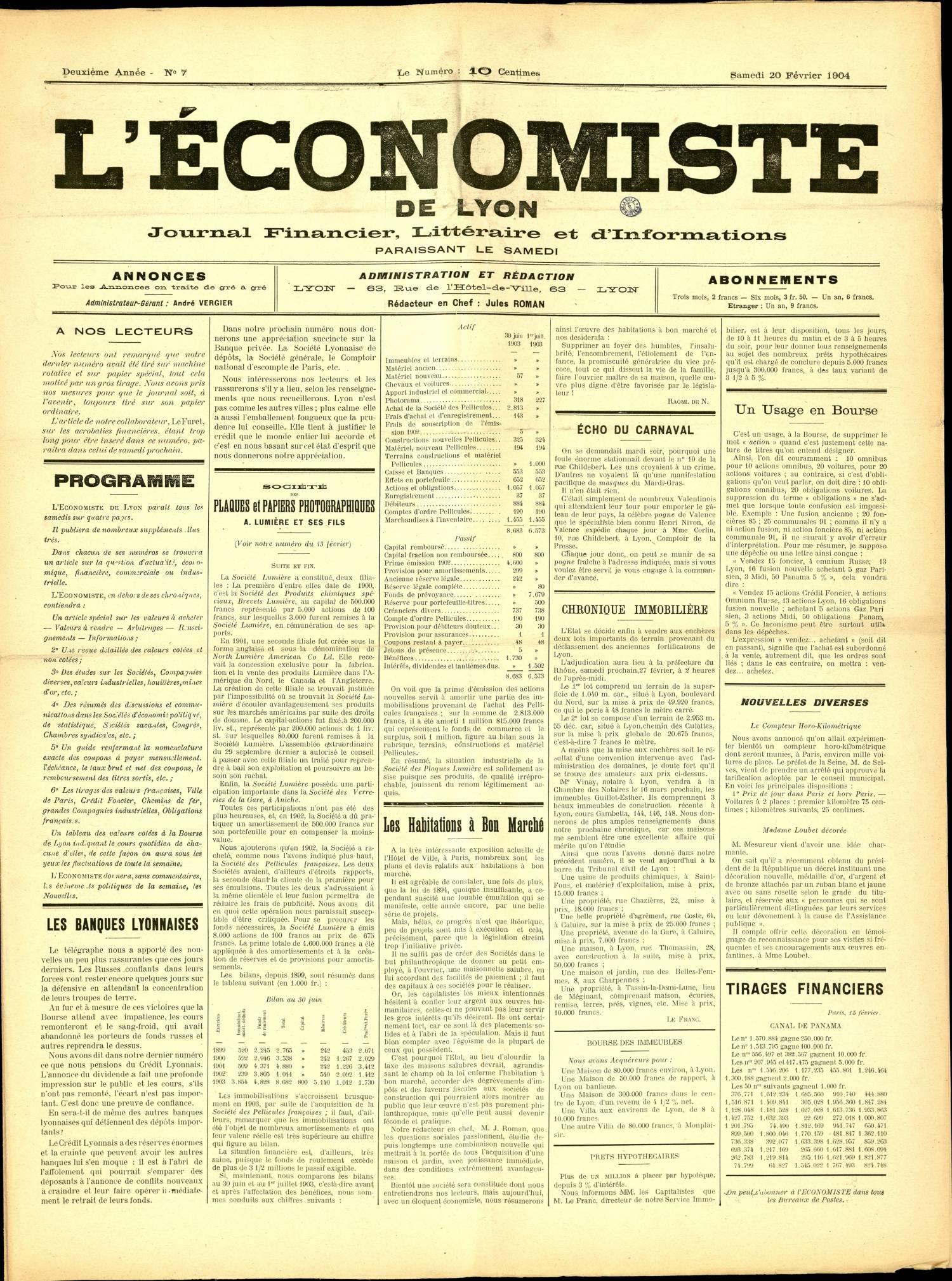 L'ECONOMISTE DE LYON (Bibliothèque municipale de Lyon - Documentation régionale, 5756)