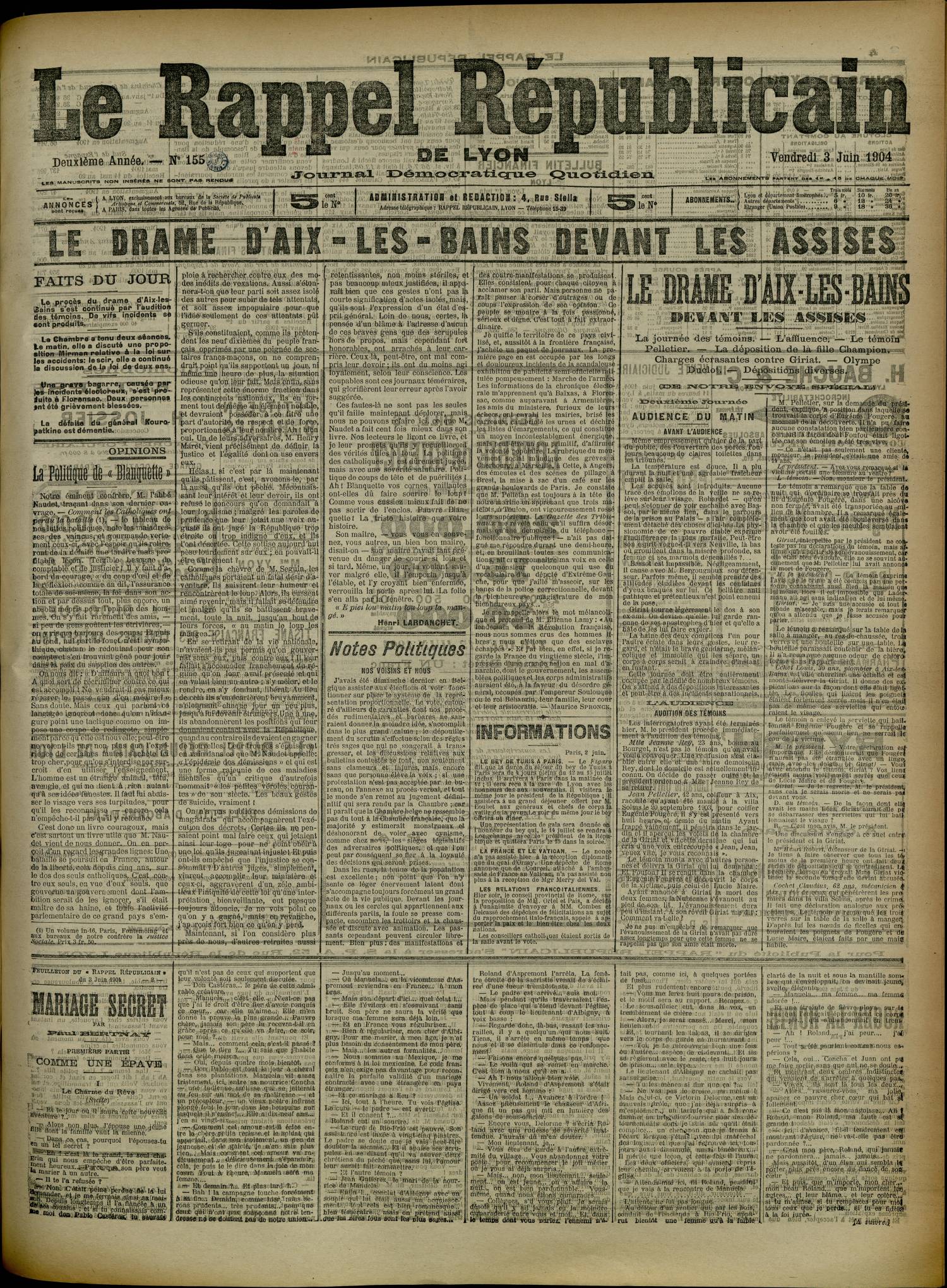 Le Rappel Républicain de Lyon (Bibliothèque municipale de Lyon - Documentation régionale, 5764)