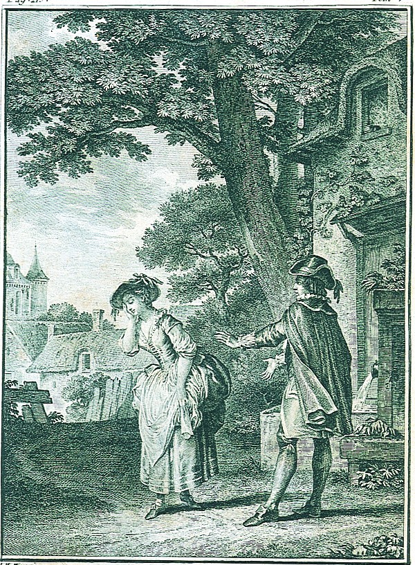 « Ah ! pour l'ordinaire L'amour ne sait guère Ce qu'il permet, ce qu'il défend ! C'est un enfant, c'est un enfant.»Enfin une ariette, Avec l'objet de mes amours, et la ronde finale Allons danser sous les ormeaux, elle aussi devenue célèbre [note]Mais il faudrait y compter aussi le premier choeur de la Scène VIII, semble-t-il, car ce choeur ne figure pas sur la partition de l'Assemblée nationale (voir plus bas). Dans ce cas-là, la dernière scène tout entière constituerait le divertissement.. Tout là-dedans n'est pas de Rousseau. Les paroles du refrain C'est un enfant sont de Collé, ainsi que l'idée du reste de ce vaudeville [note] Les paroles de cette chanson sont lues par les personnages (le devin tire un papier de sa poche) : c'est une façon de signaler leur origine étrangère.. L'ariette de Colette est faite par Rousseau sur des paroles de Cahusac (librettiste de son ennemi Rameau) parce que le rôle de Colette ne comporte rien d'assez brillant pour la voix de Mademoiselle Fel, la plus célèbre chanteuse de l'Opéra à l'époque (et l'amie intime de Cahusac). Figure aussi un air de clavecin emprunté au baron d'Holbach dans des circonstances qui inspirent à Rousseau la défiance qui accompagne souvent chez lui ce que Jean Starobinski appelle une rumination rétrospective. C'est l'unique emprunt proprement musical qu'il ait fait [note]Pour toutes ces précisions voir la note de Rousseau, Deuxième Dialogue, OEuvres complètes, I, p. 870-871..