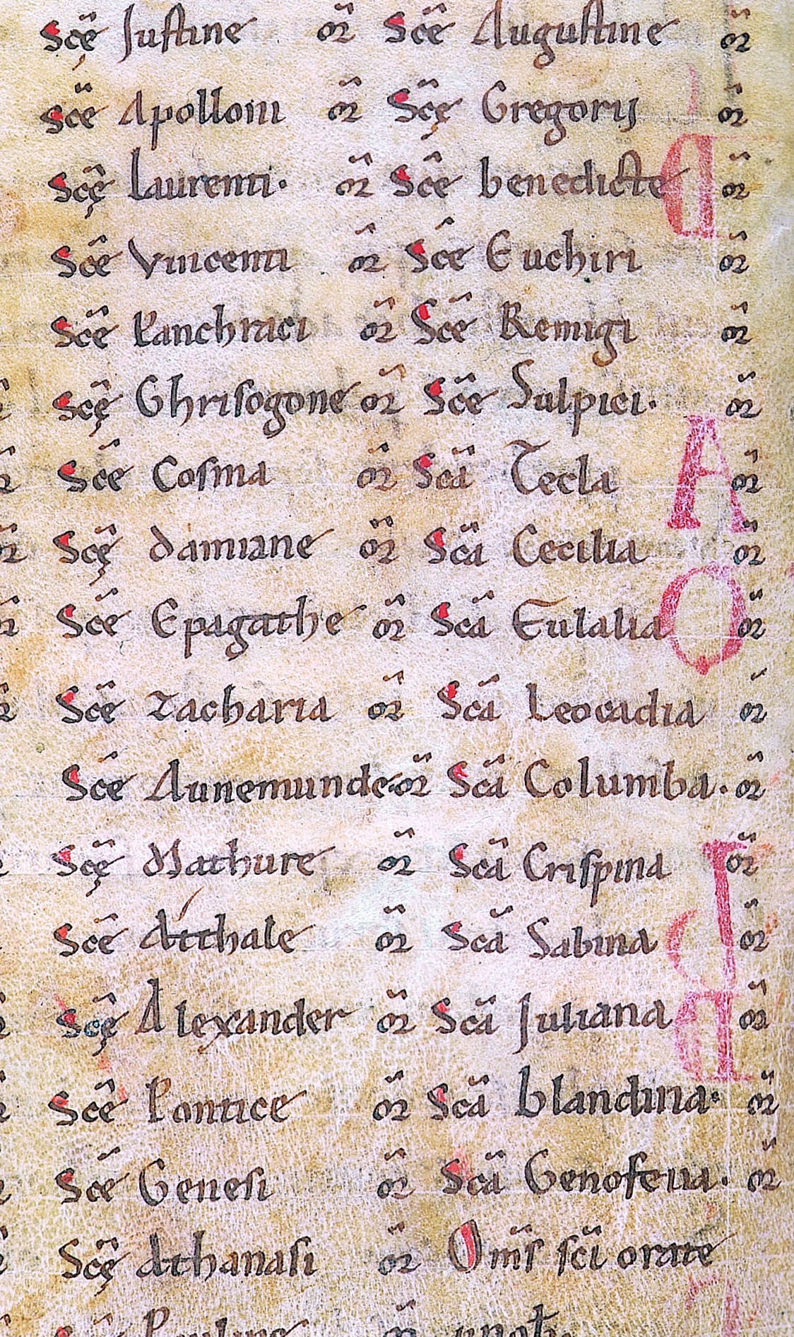 Il faut évoquer à ce propos le seul sacramentaire du XIe siècle encore conservé à la Bibliothèque de nos jours : aujourd'hui inséré dans les cent huit premiers folios d'un manuscrit composite (Ms 537, fol. 1-108v), ce sacramentaire, incomplet, est écrit à longues lignes, d'une même main, et il est une copie fidèle d'un sacramentaire grégorien augmenté - dans une seconde partie distincte - du supplément de Benoît d'Aniane. Comme en témoignent un certain nombre d'indices sur lesquels nous ne pouvons ici insister, ce livre a été écrit à Lyon pour un usage local ; sans entrer dans le détail du plan, mentionnons simplement la présence de plusieurs saints lyonnais dans la litanie en usage pour le Samedi-Saint (Epagate, Annemunde, Alexandre, Blandine, etc.), alors que le sanctoral est, quant à lui, purement romain. Dans le cadre d'une étude sur l'introduction de ce type de sacramentaire dans le diocèse de Lyon, il conviendrait d'observer les relations entre ce manuscrit et les deux sacramentaires lyonnais du IXe siècle ; ce travail reste aujourd'hui largement à faire.
