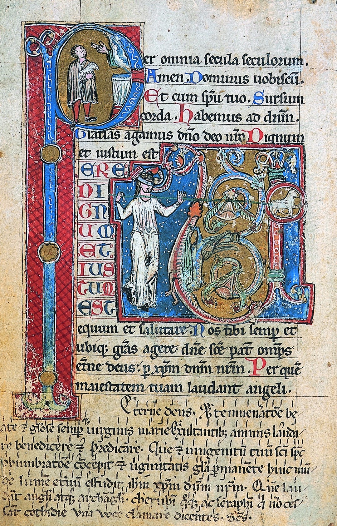 Loin de céder à la « terreur » évoquée par le chanoine Deville, j'aimerais ici évoquer le riche fonds des manuscrits liturgiques conservés à la Part-Dieu. Il ne s'agit pas de donner une vue exhaustive de l'ensemble du fonds liturgique médiéval de la Bibliothèque ; la richesse de cette dernière dépasserait de loin les limites de cet article et nécessiterait, à n'en pas douter, un cadre beaucoup plus large. En revanche, une idée assez juste de la valeur de ce même fonds peut être obtenue dans le choix d'un manuscrit sélectionné, non pas pour sa beauté, sa valeur esthétique, mais pour son histoire propre et pour l'objet historique qu'il représente comme tel. Vecteurs de la pratique « vécue », les livres liturgiques offrent la possibilité d'étudier, d'analyser et de comprendre les fondements et les développements du culte, c'est-à-dire les relations rituelles, « esthétisées », que les hommes entretiennent avec l'au-delà.