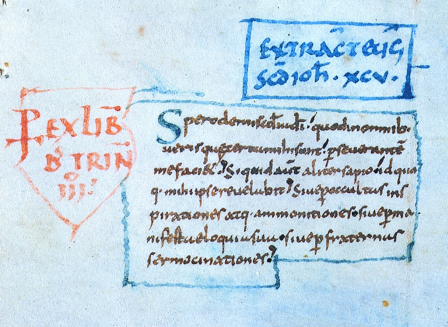 Pour reconstituer le contenu de la bibliothèque capitulaire du temps de Florus, la méthode est simple : il suffit d'interroger les oeuvres-mêmes de Florus et de ses évêques. Florus a en effet composé plusieurs recueils d'extraits des Pères de l'Eglise : nous en connaissons au moins trois, le commentaire des Epîtres de saint Paul tiré des oeuvres de saint Augustin, dont nous avons partiellement, avec le manuscrit Ms 484, l'original autographe, le commentaire des douze Pères, qui rassemble les extraits pauliniens de divers auteurs ecclésiastiques grecs et latins de l'Antiquité, et la compilation De fide, faite d'extraits d'auteurs antiques sur le sujet de la foi. Les deux premiers sont des ouvrages énormes, où les extraits pauliniens des divers auteurs sont disposés épître après épître, dans l'ordre de déroulement du texte paulinien. En face de ces compilations, nous possédons encore une partie des manuscrits d'où Florus a tiré les extraits qu'il rassemblait méthodiquement, et nous pouvons voir l'auteur à l'ouvrage.