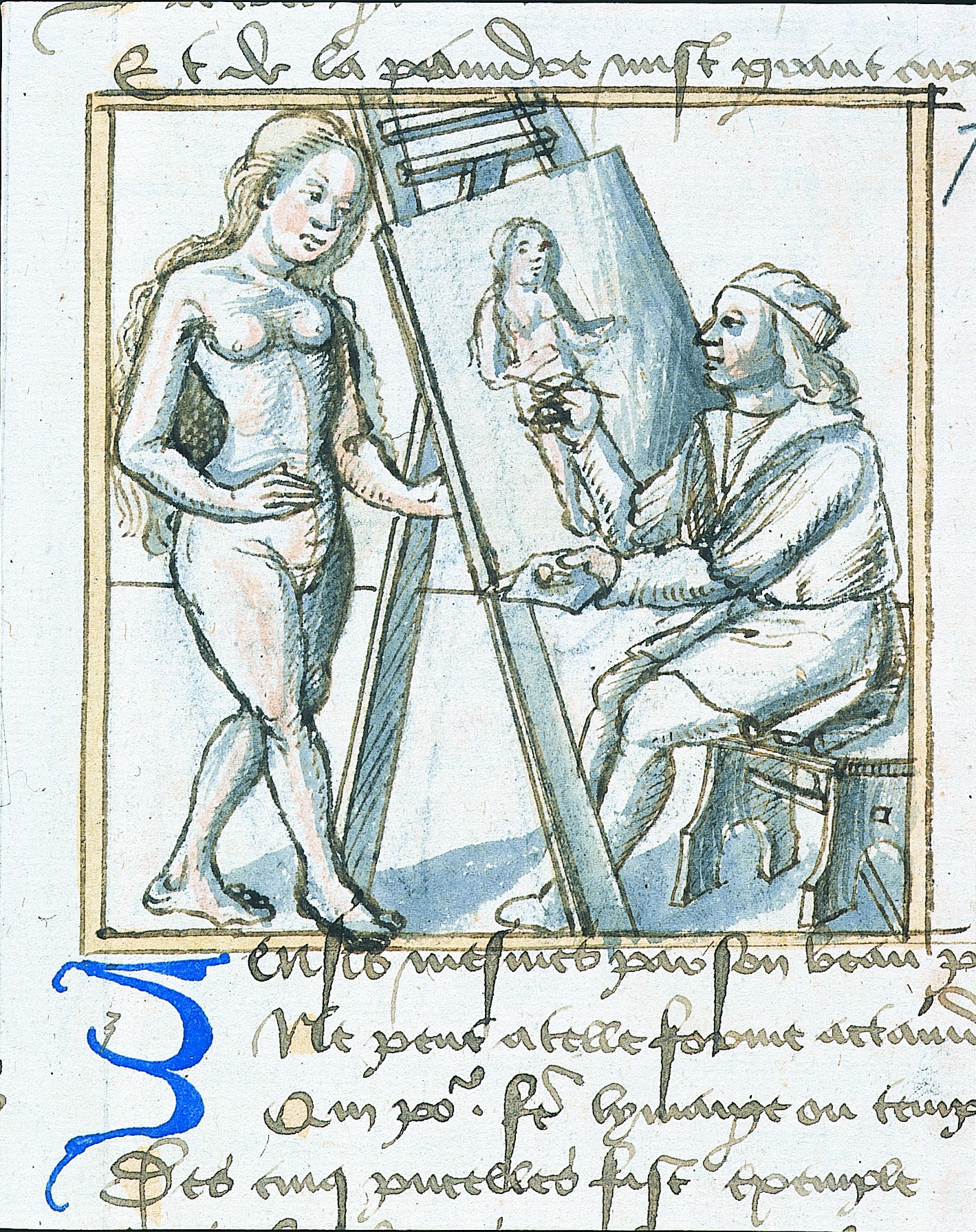 De fait, quelle que soit la période, le « mâle Moyen Age » fut trop souvent émasculé et la nudité féminine pudiquement voilée. La forme de déprédation de l'image la plus répandue est de loin, en effet, la censure de pudeur. Ce sentiment n'est nullement inconnu des temps médiévaux car, depuis Augustin, on considérait que les images lascives détournaient la piété des fidèles ; mais la seule nudité sans intention érotique immédiate n'entraînait pas les foudres des censeurs. Cependant, on peut penser que les artistes pratiquaient de leur propre autorité une auto-censure efficace, et il faut vraisemblablement en observer l'effet dans une illustration d'un Roman de la Rose enluminé au XVe siècle (ill. p. X), dont un peintre et son modèle nu, une femme aux longs cheveux déployés, sont les protagonistes. En cette image, la simple nudité du modèle n'a rien que de biologique : on ne nous cache rien de son corps. Mais sa représentation par le peintre, mise en abîme dans l'enluminure, est moins innocente qu'il n'y paraît : la main du peintre vient opportunément dissimuler son pubis, créant les conditions d'une double lecture de la nudité féminine, innocente en soi, non dans sa représentation, et que l'artiste lui-même est chargé de censurer.