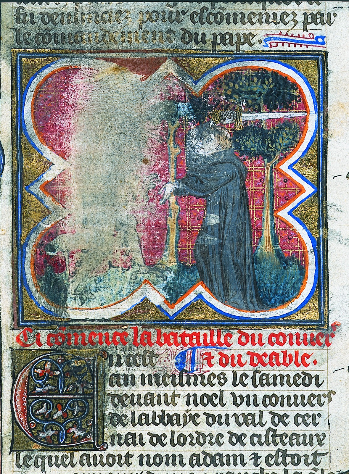 "Adam le cirtercen, combattant le diable", Grandes chroniques de France XVIIème siècle (BM Lyon, Ms 880, f. 354, détail)