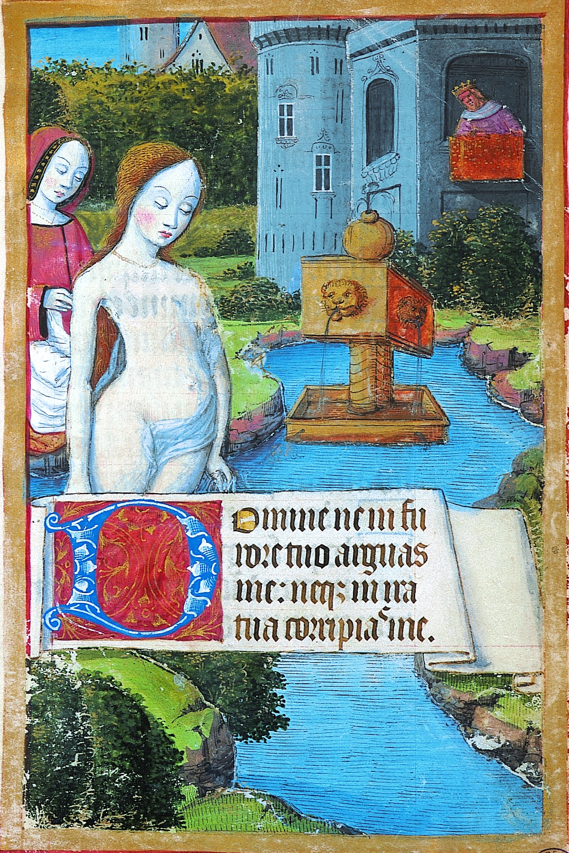 "Scène censurée du bain de Bethsabée", Livre d'heures, XVème siècle (BM Lyon, Ms 5141, f. 89)