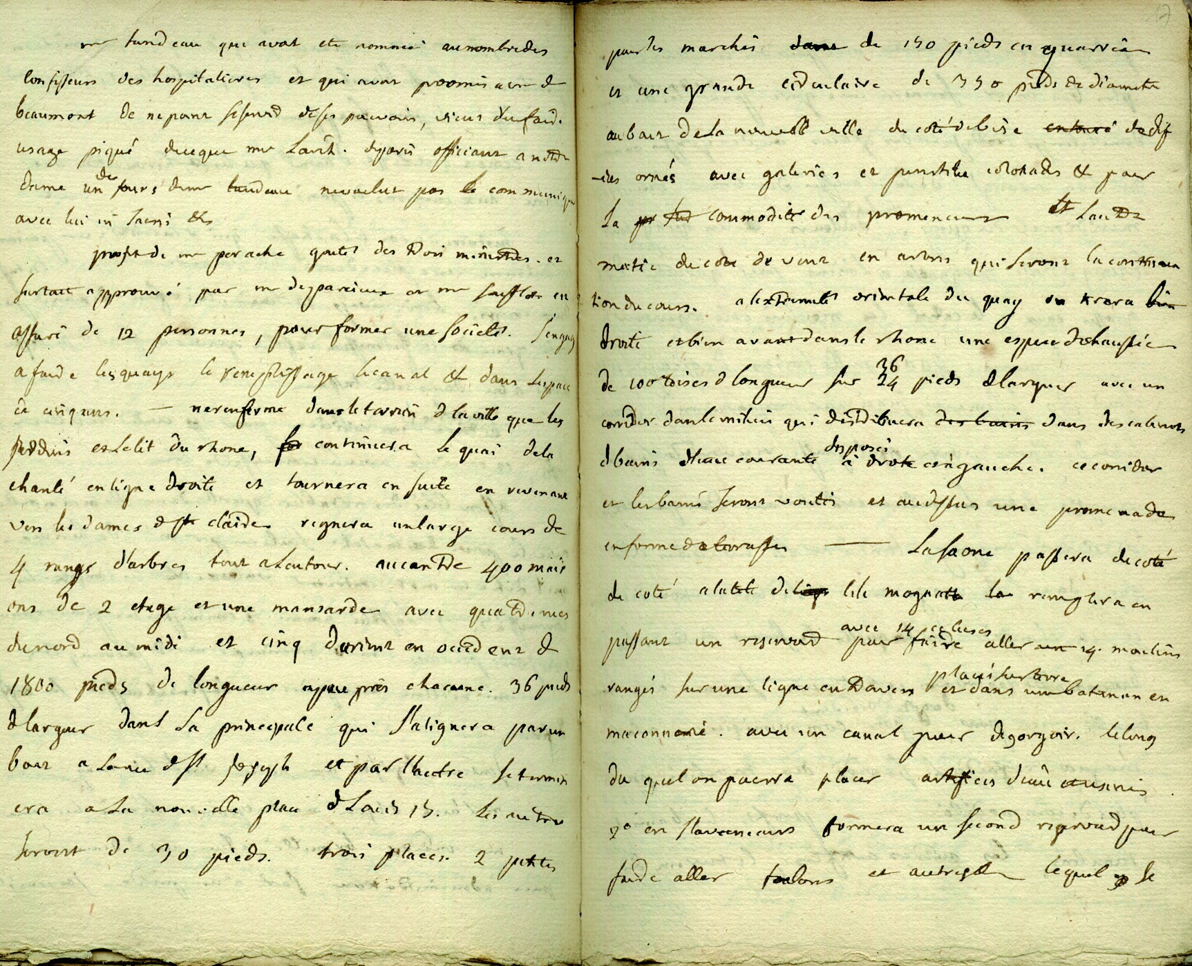 Projet de Mr Perrache pour la partie méridoniale de la ville de Lyon dessin au lavis, c. 1760 (BM Lyon, Coste 166). Parmi les grands travaux entrepris à Lyon au Siècle des Lumières, l'abbé Duret évoque plusieurs fois ceux de l'ingénieur Perrache visant à repousser le confluent jusqu'à la Mulatière.