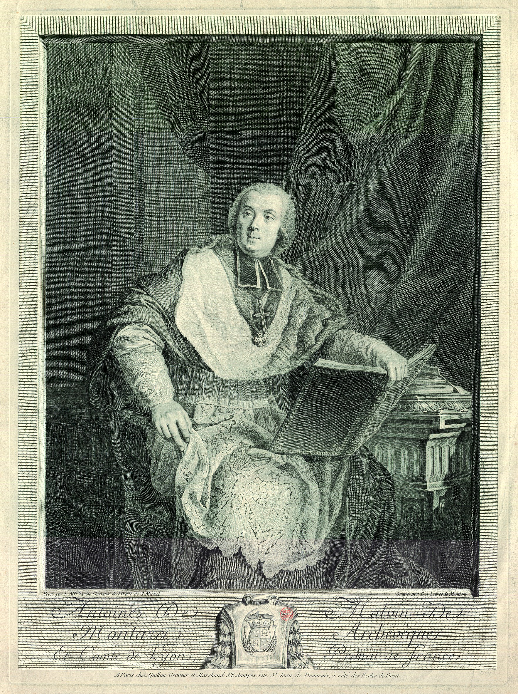 Antoine de Malvin de Montazet [...], peint par L.- Mel Vanloo, gravé par C.-A Littret de Montigny à Paris, chez Quillan (BM Lyon, Coste 14 491)