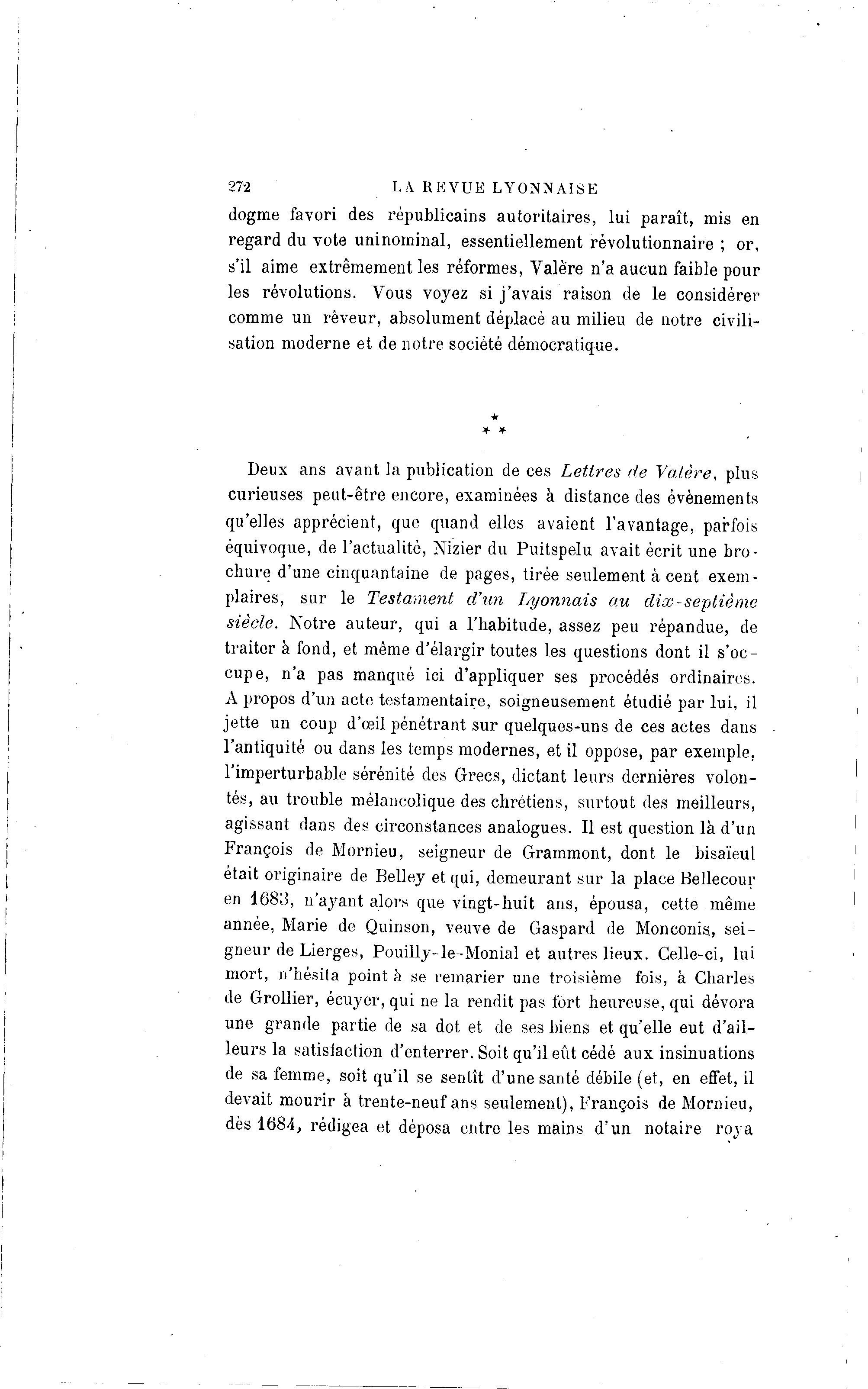 plaires, sur le Testament d'un Lyonnais au dix-septième