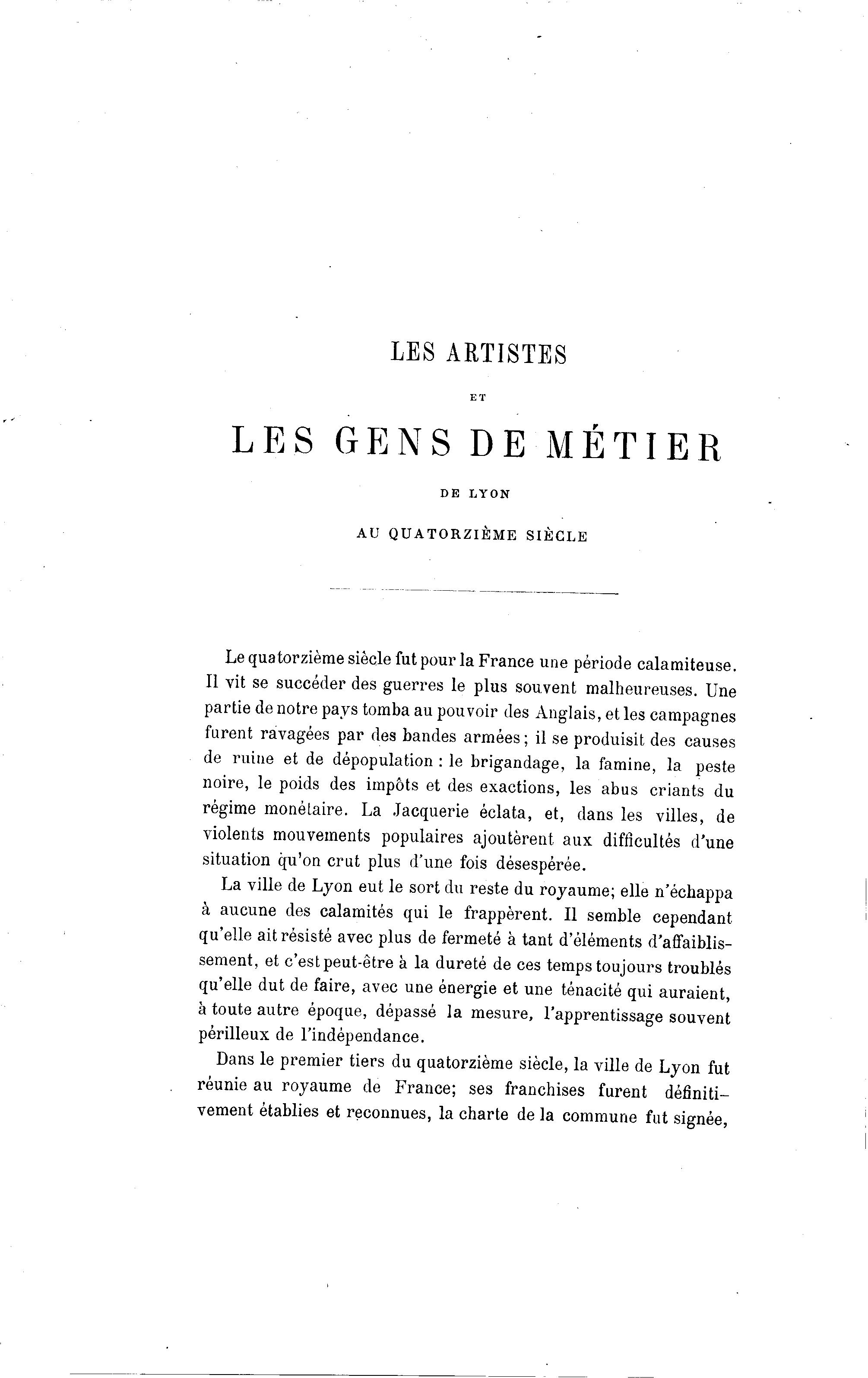 Dans le premier tiers du quatorzième siècle, la ville de Lyon fut