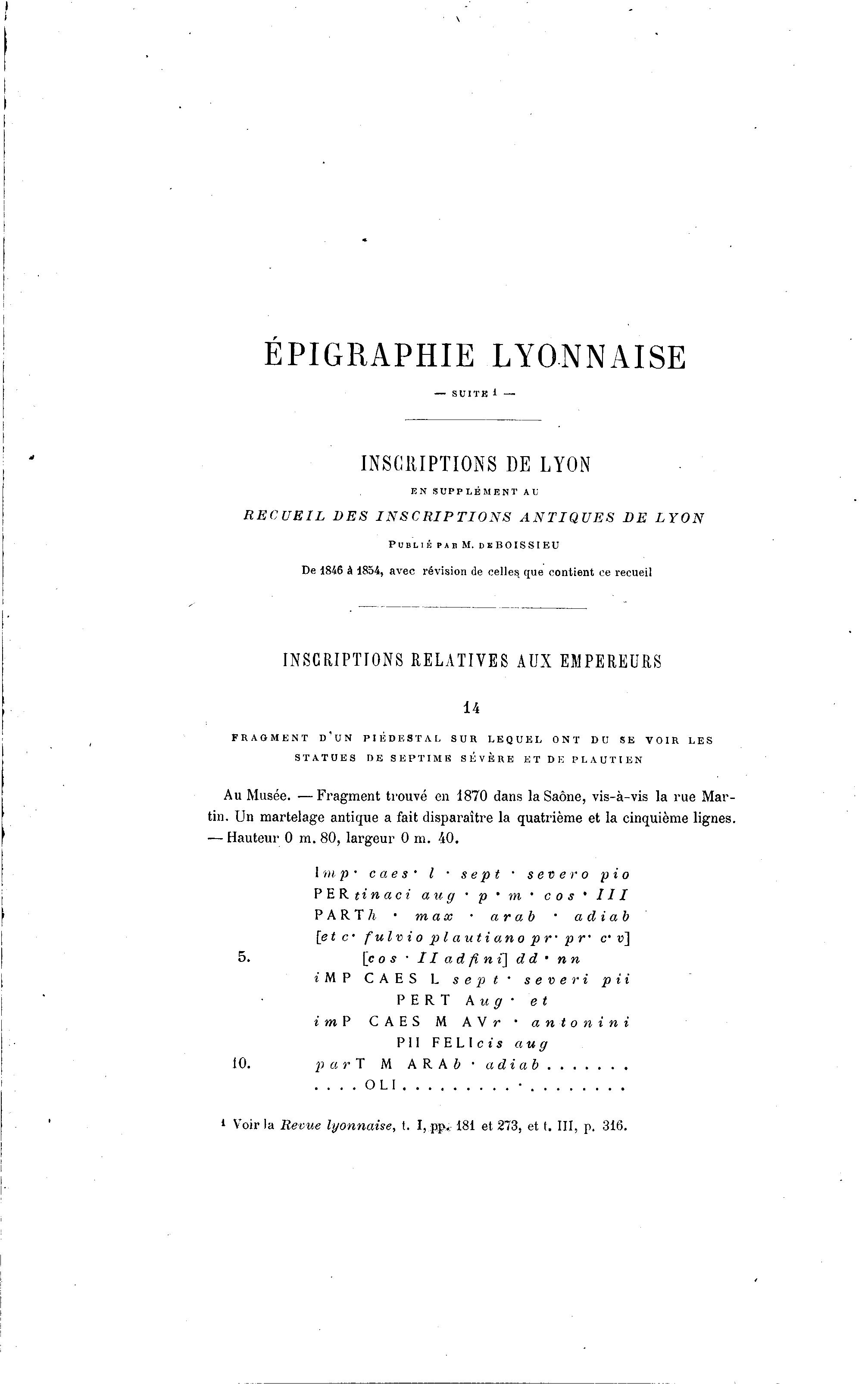 EPIGRAPHIE LYONNAISE
