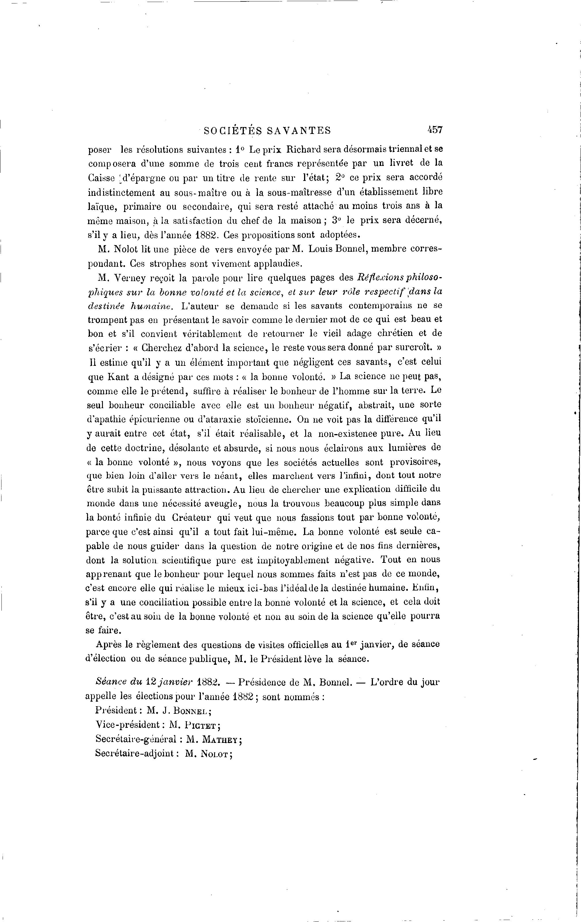 M. Nolot lit une pièce de vers envoyée par M. Louis Bonnel, membre corres-