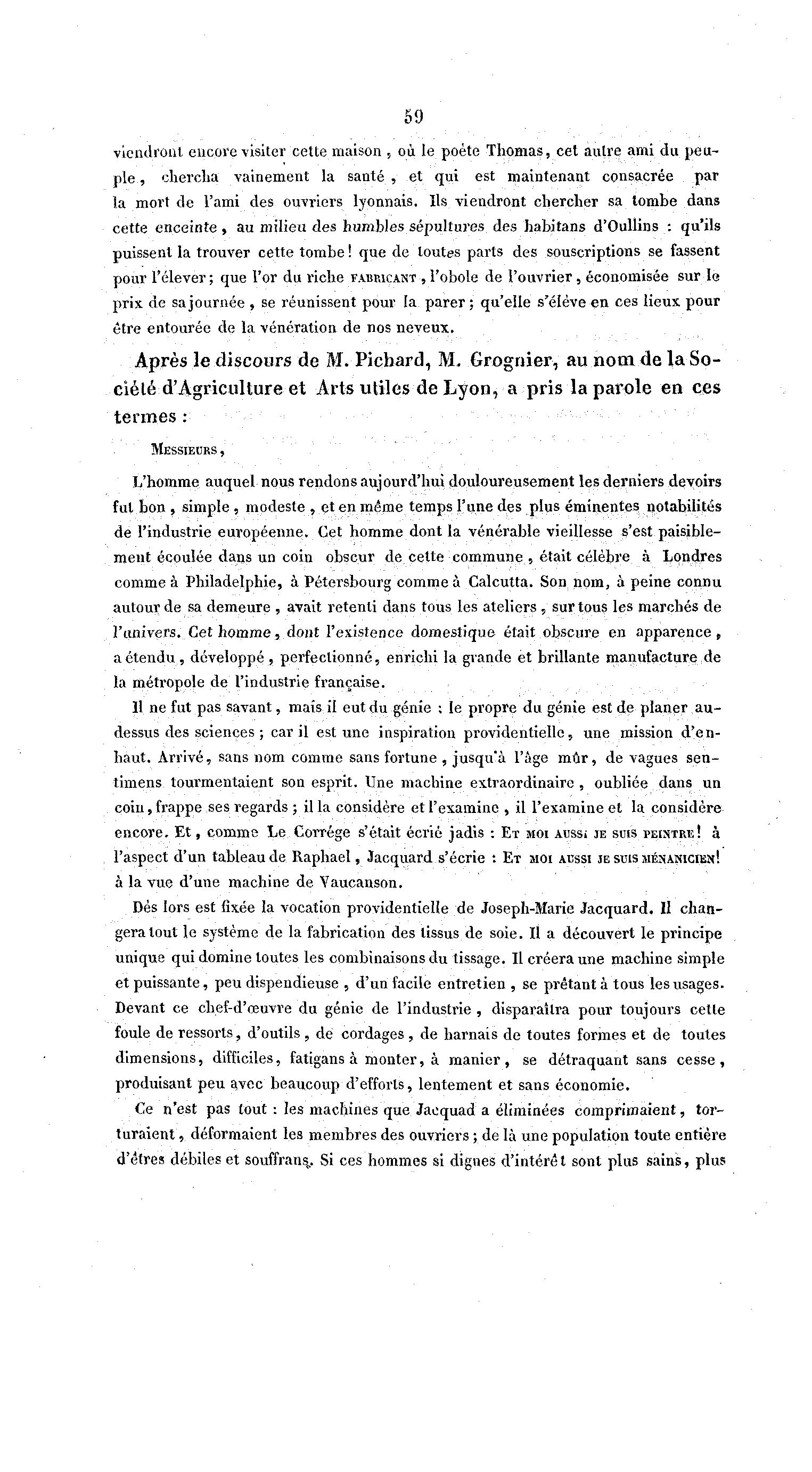 ciété d'Agriculture et Arts utiles de Lyon, a pris la parole en ces