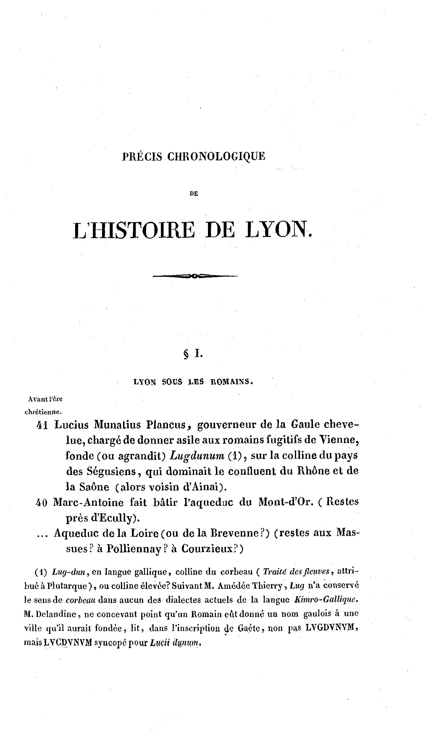 (1) Lug-dun,en langue gallique, colline du corbeau ( Traité des fleuves, attri-