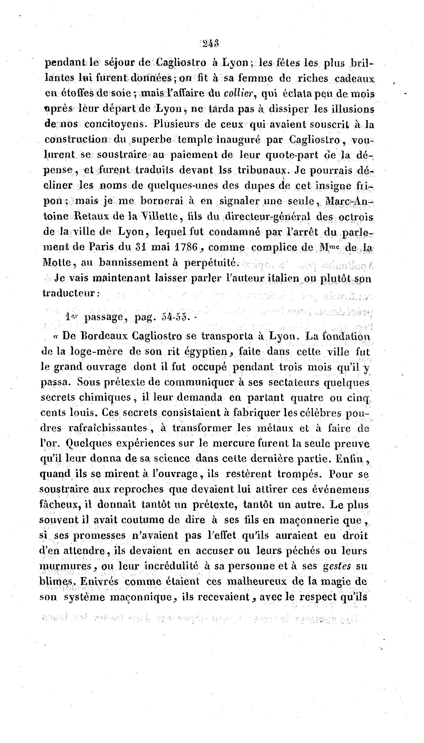 « De Bordeaux Cagliostro se transporta à Lyon. La fondation