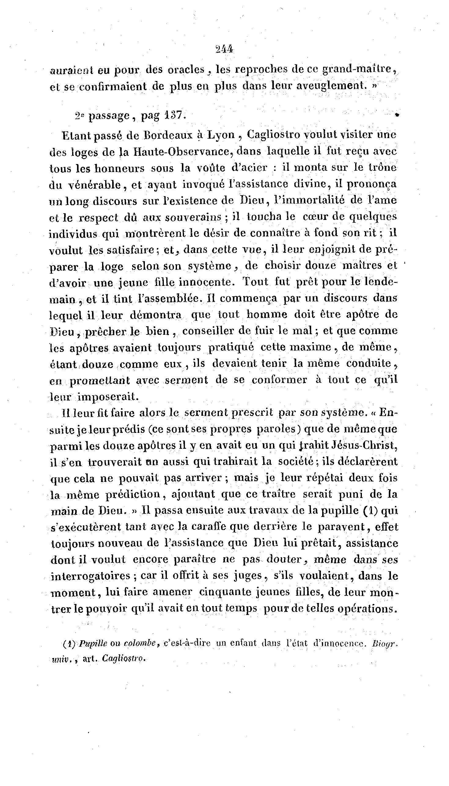 Etant passé de Bordeaux à Lyon , Cagliostro voulut visiter une