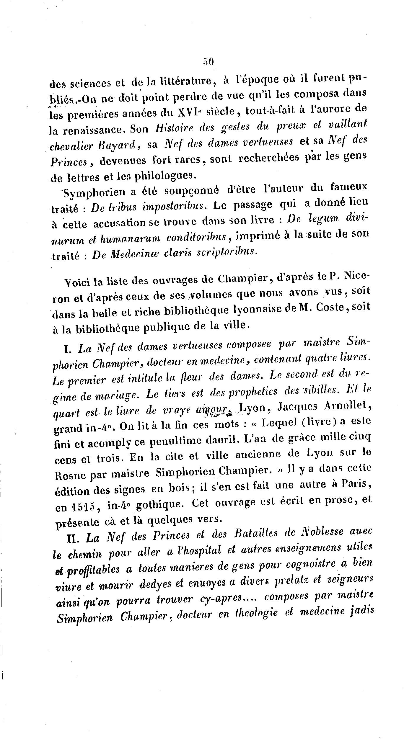 Voici la liste des ouvrages de Champier, d'après le P. Nice-