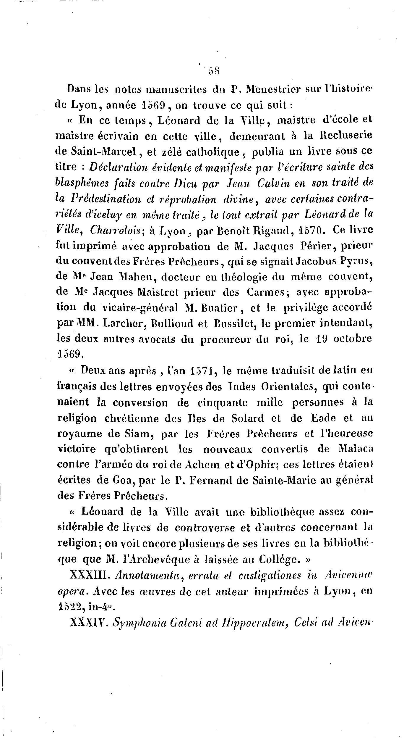 de Lyon, année 1569, on trouve ce qui suit :