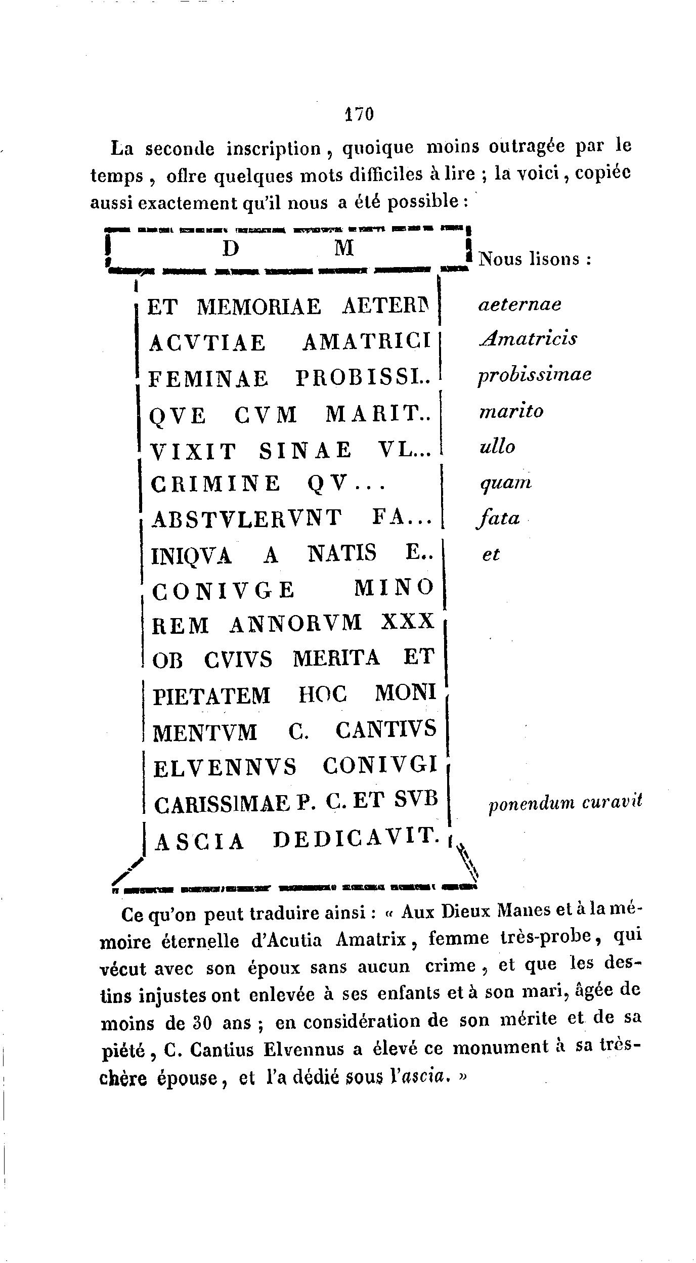 Ce qu'on peut traduire ainsi : « Aux Dieux Mânes et à la mé-