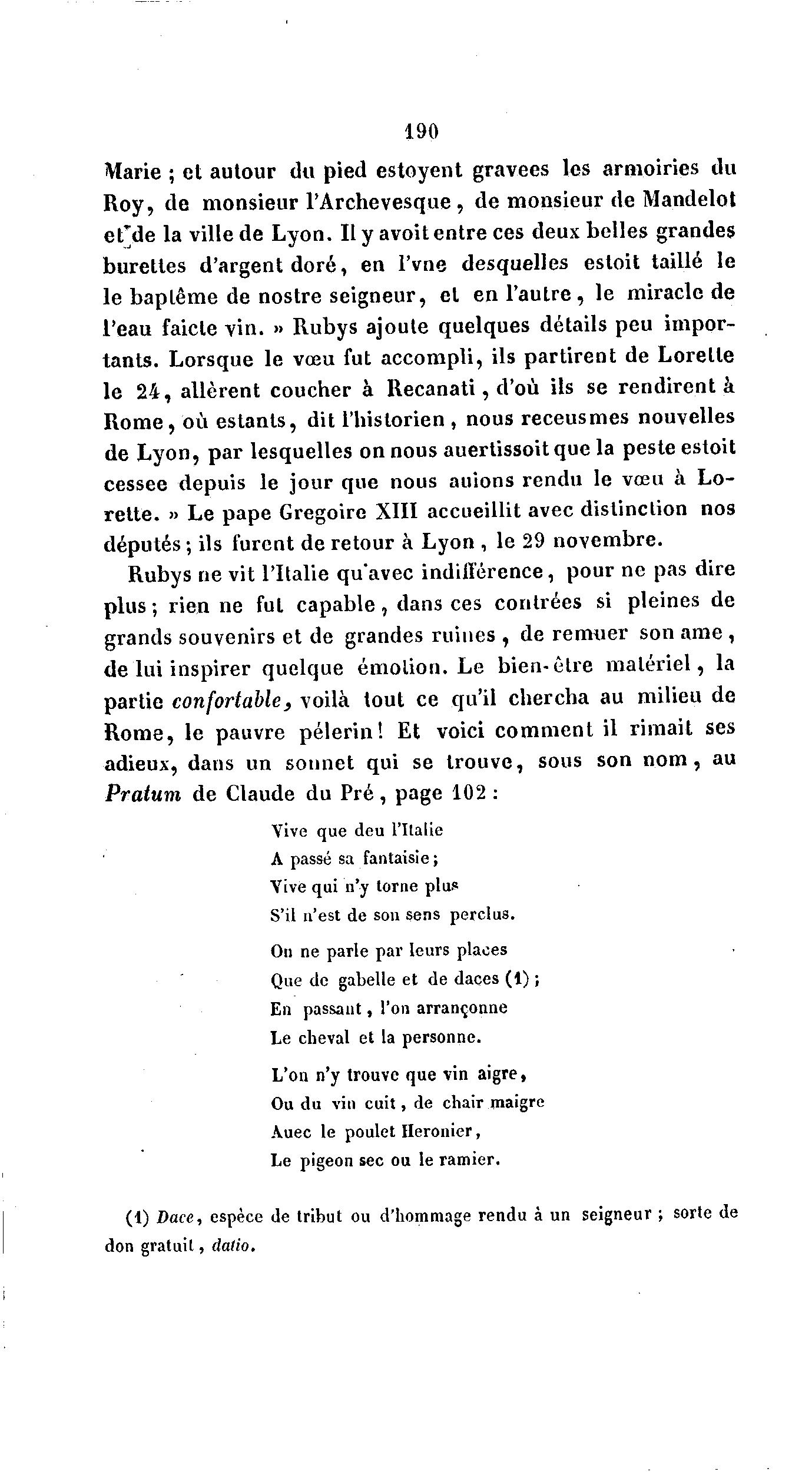 l'eau faicle vin. » Rubys ajoute quelques détails peu impor-