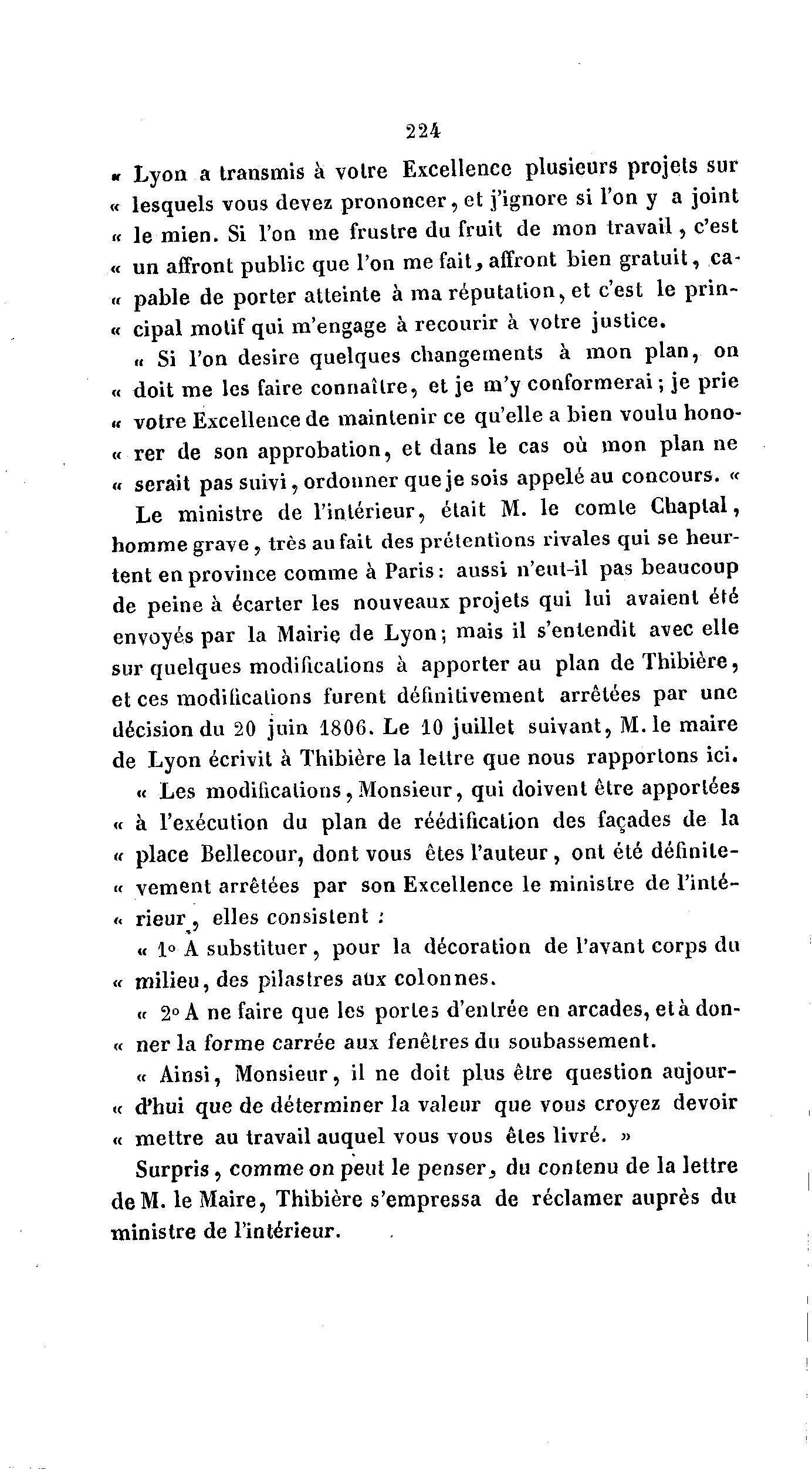 sur quelques modifications à apporter au plan deThibière,