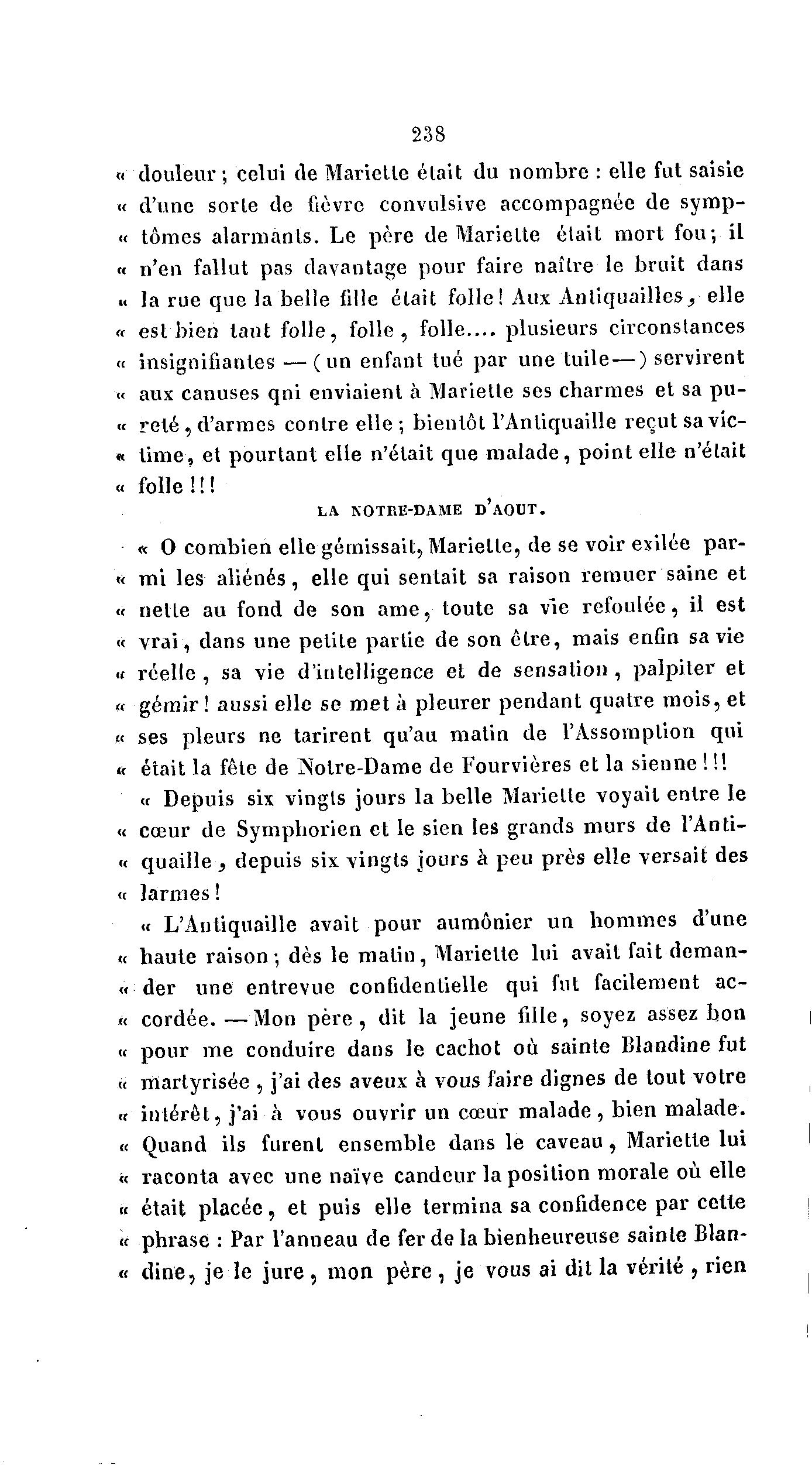 « ses pleurs ne tarirent qu'au matin de l'Assomption qui