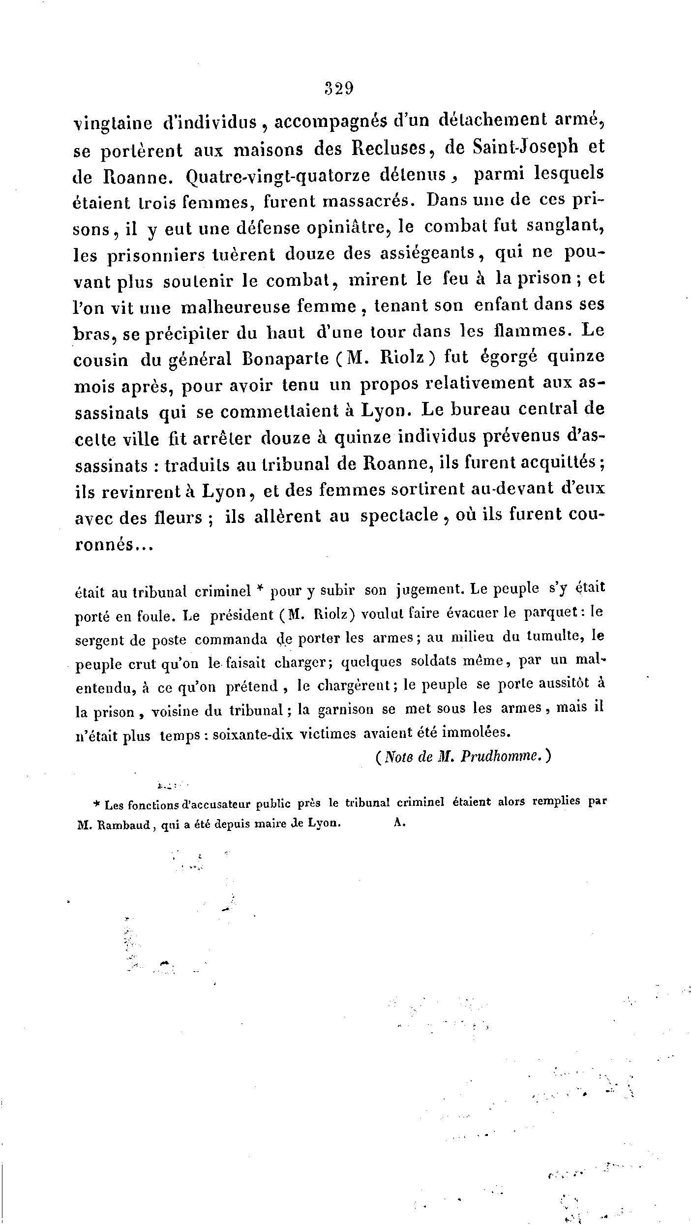 cousin du général Bonaparte ( M . Riolz ) fut égorgé quinze