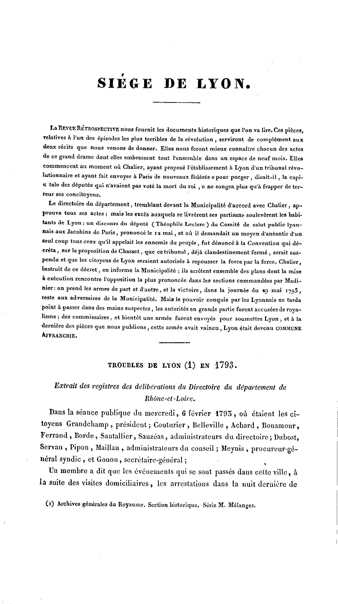 TROUBLES DE LYON (1) EN 1 7 9 3 .