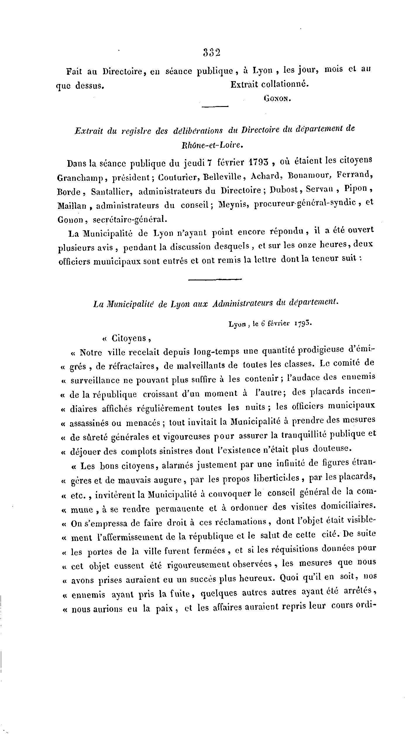 Fait au Directoire, en séance publique, à Lyon , les jour, mois et au