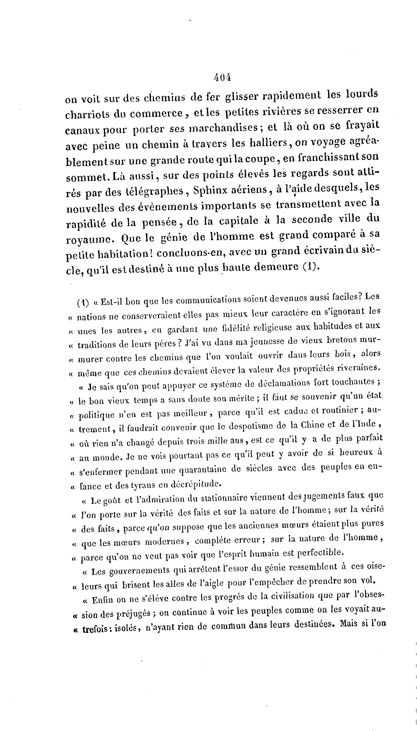 « Enfin on ne s'élève contre les progrès de la civilisation que par l'obses-