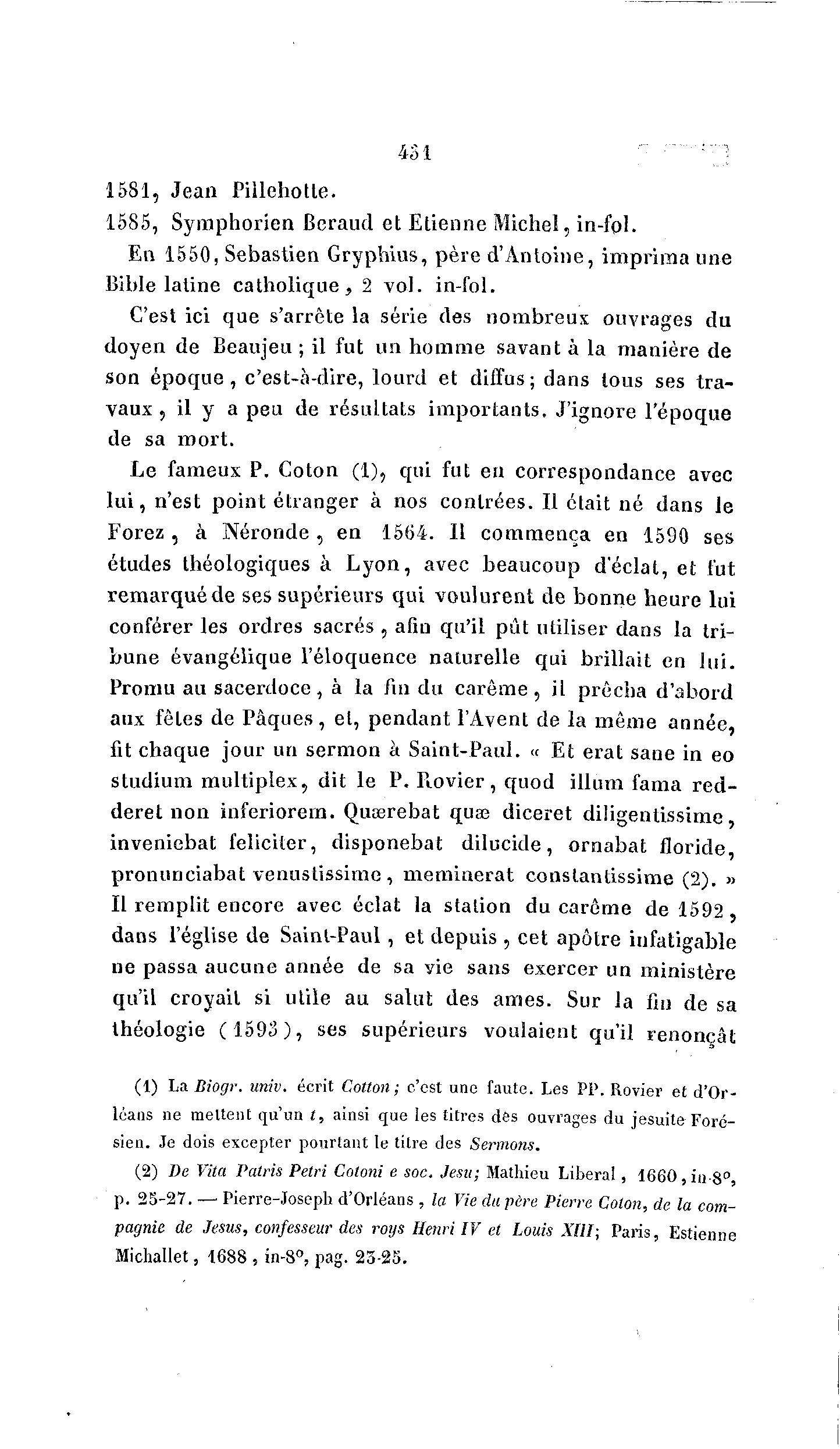 (1) La Biogr. univ. écrit Cotton ; c'est une faute. Les PP. Rovier et d'Or-