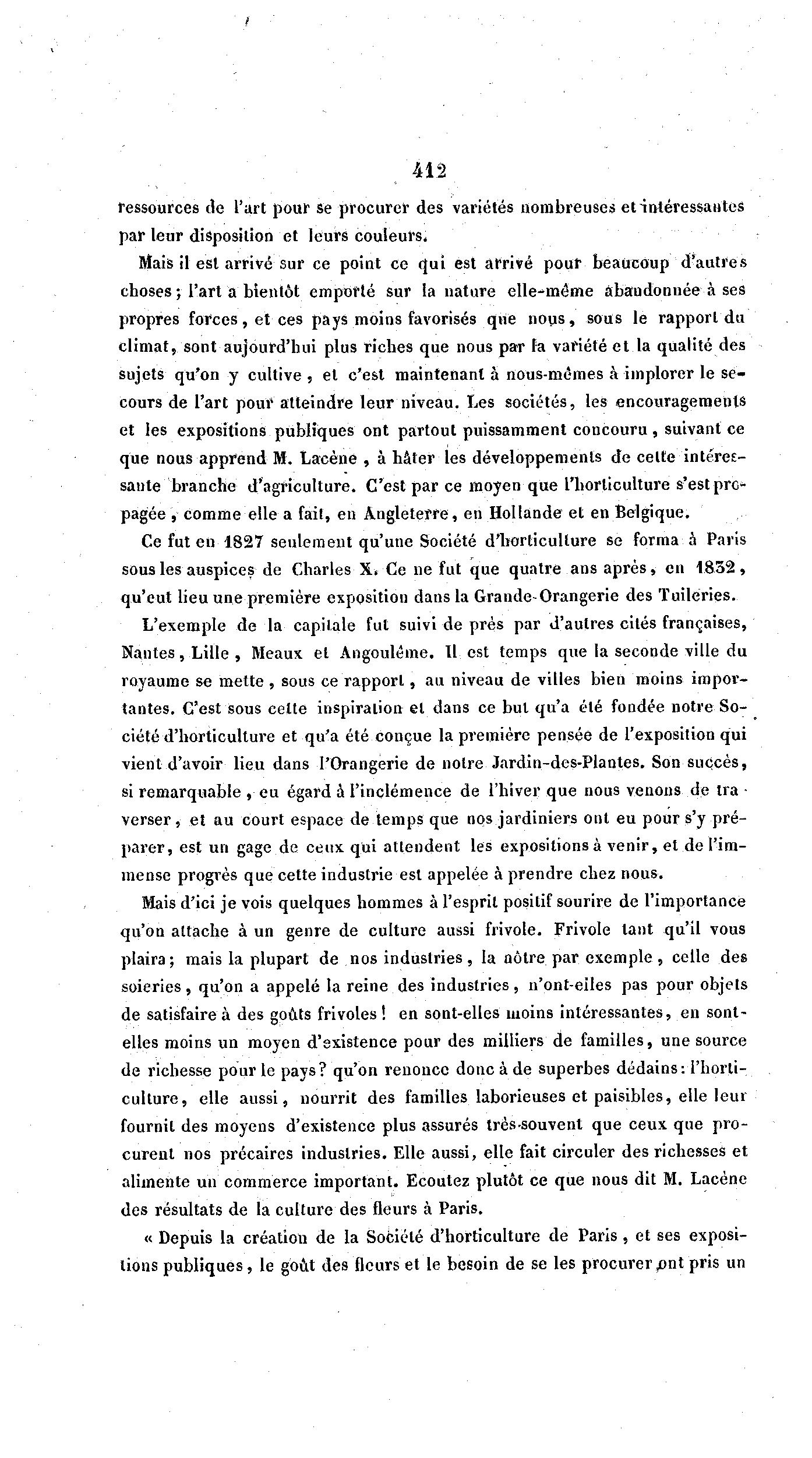 « Depuis la création de la Société d'horticulture de Paris, et ses exposi-