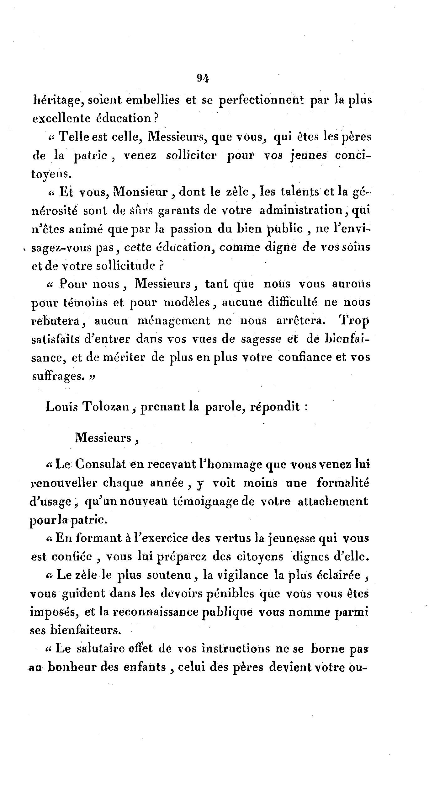 Louis Tolozan, prenant la parole, répondit :