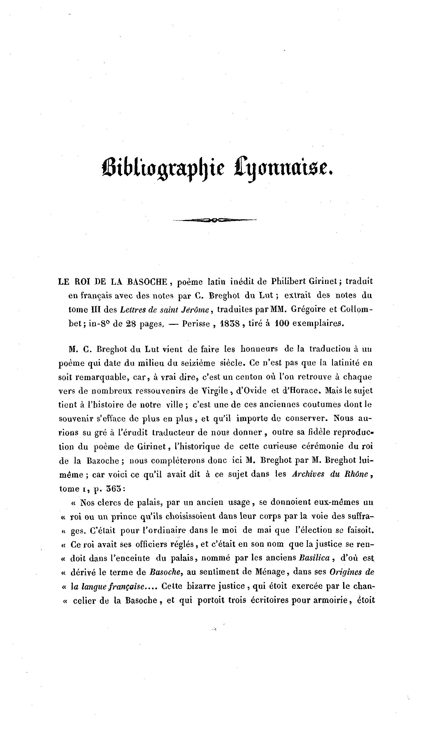 LE ROI DE LA BASOCHE, poème latin inédit de Philibert Girinet ; traduit