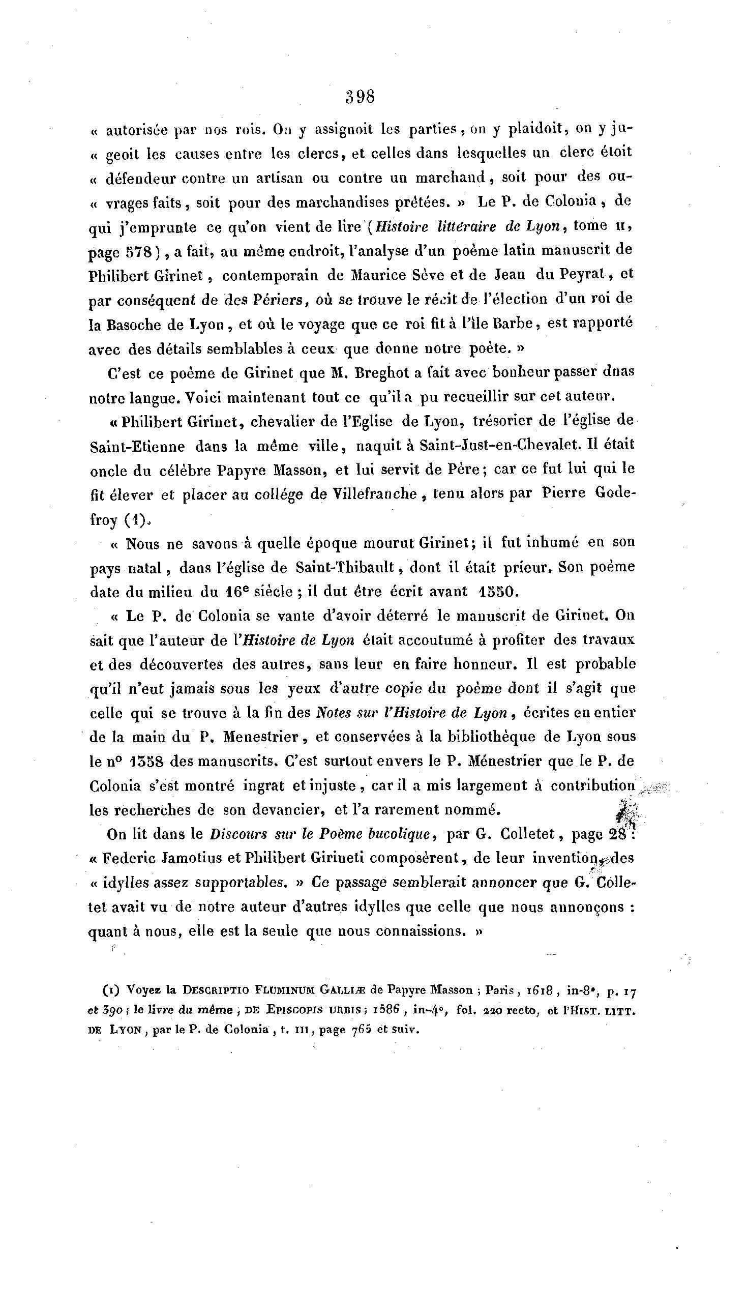 qui j'empruate ce qu'on vient de lire (Histoire littéraire de Lyon, tome u ,