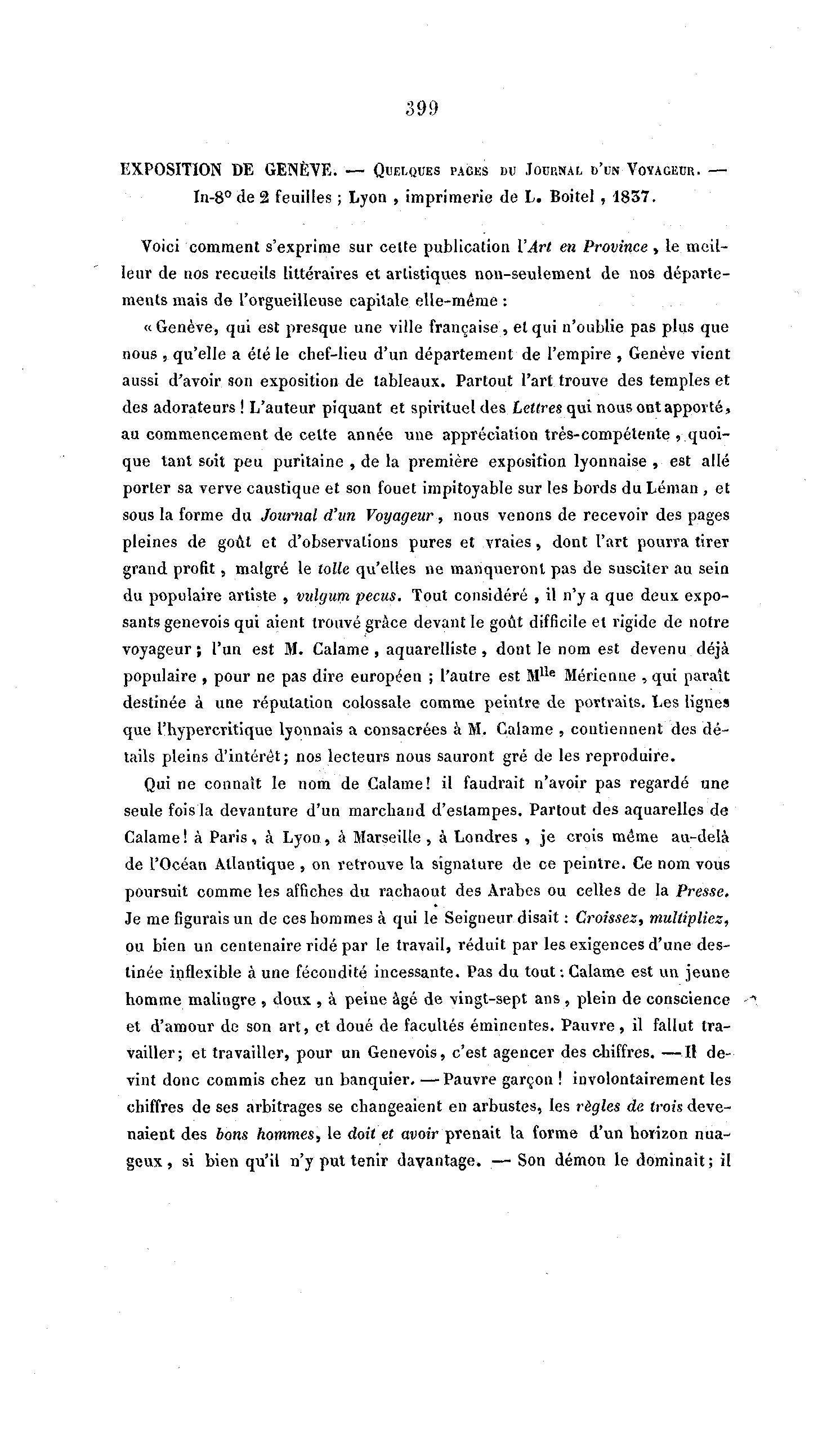 voyageur ; l'un est M. Calame , aquarelliste, dont le nom est devenu déjÃ