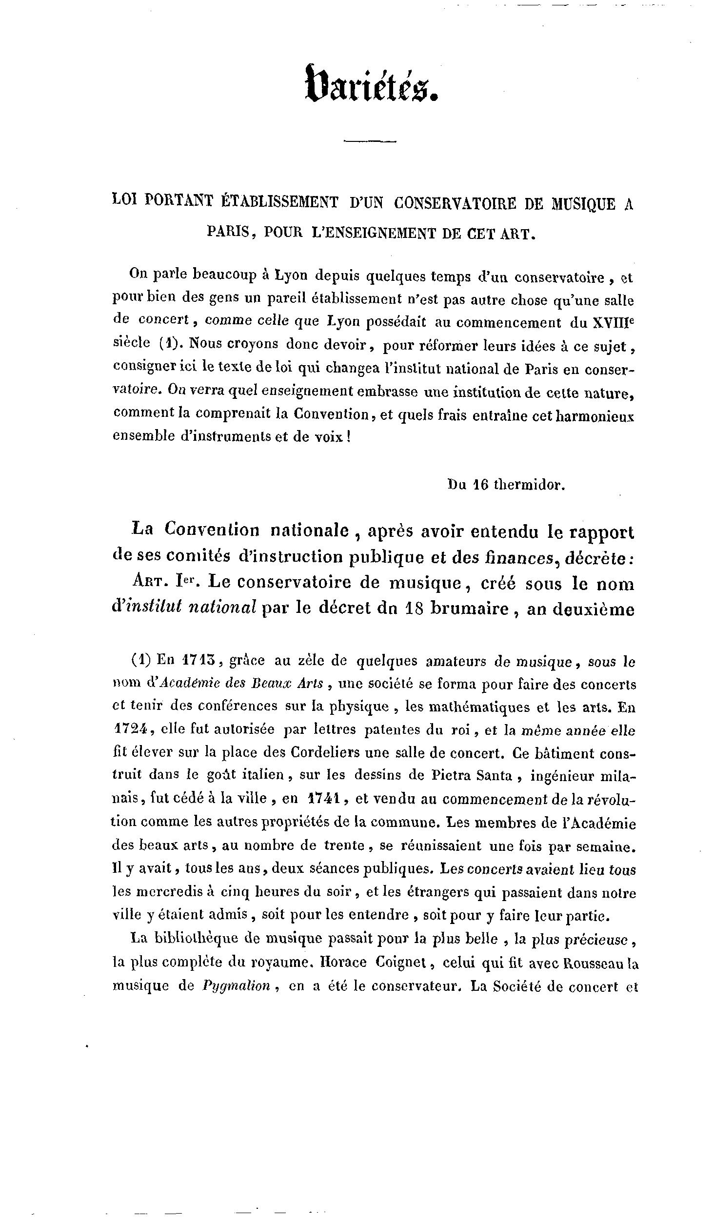 ART. I er . Le conservatoire de musique, créé sous le nom