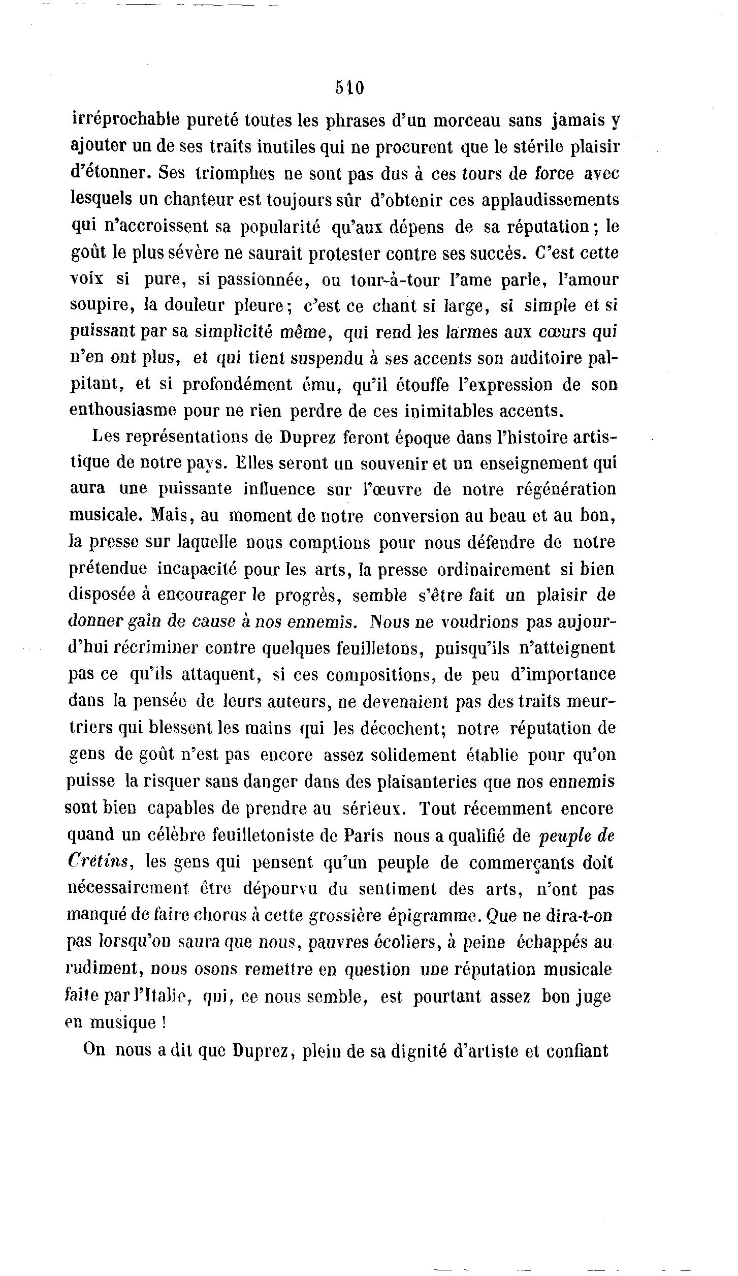 On nous a dit que Duprez, plein de sa dignité d'artiste et confiant