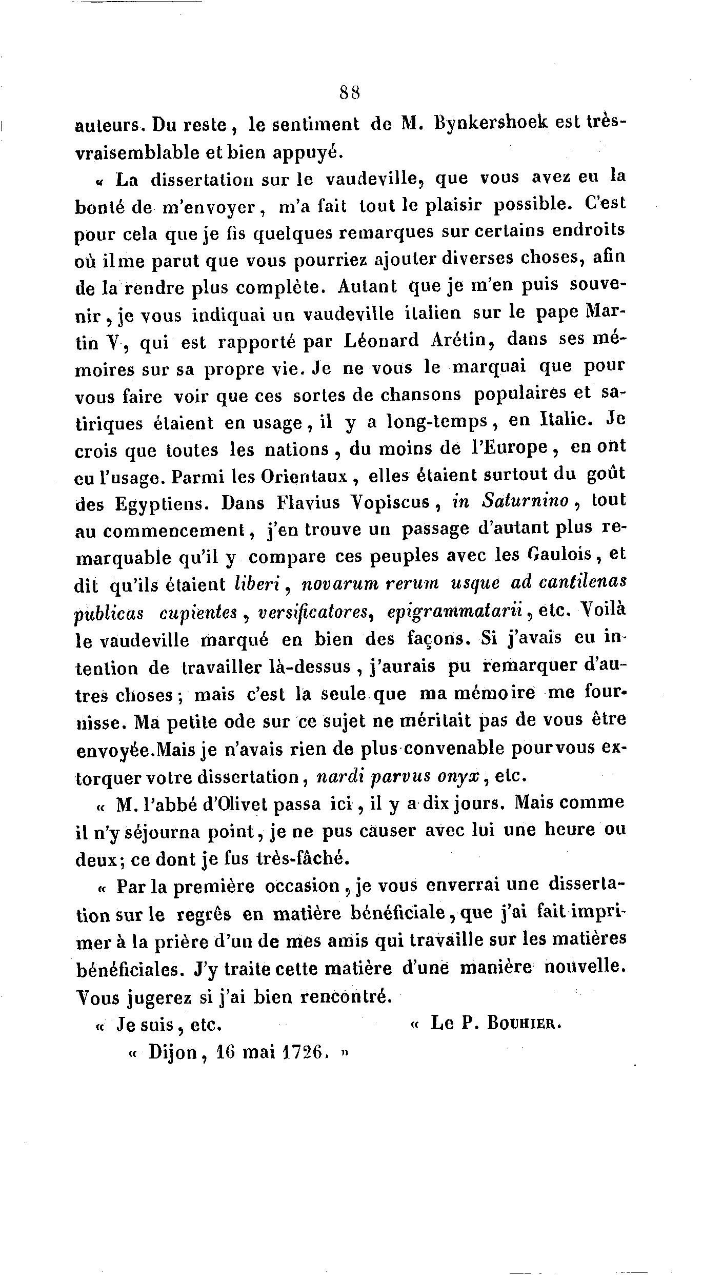 « Je suis, etc. « Le P. BOUHIER.